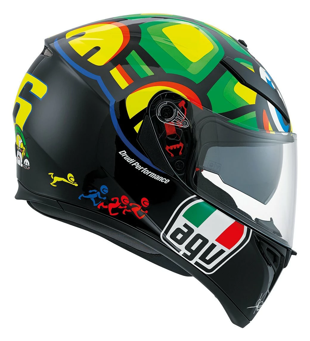 The AGV K3 SV Helmet builds on AGV’s extensive experience in designing the Pista GP and Corsa helmets as well as the legacy of the original K3 helmet. An aerodynamic shell shape is optimized for stability and aggressive aesthetics and features an integrated, compact rear spoiler to reduce turbulence. The narrow chin bar is streamlined to help the helmet cut through the wind at high speeds, further increasing stability.