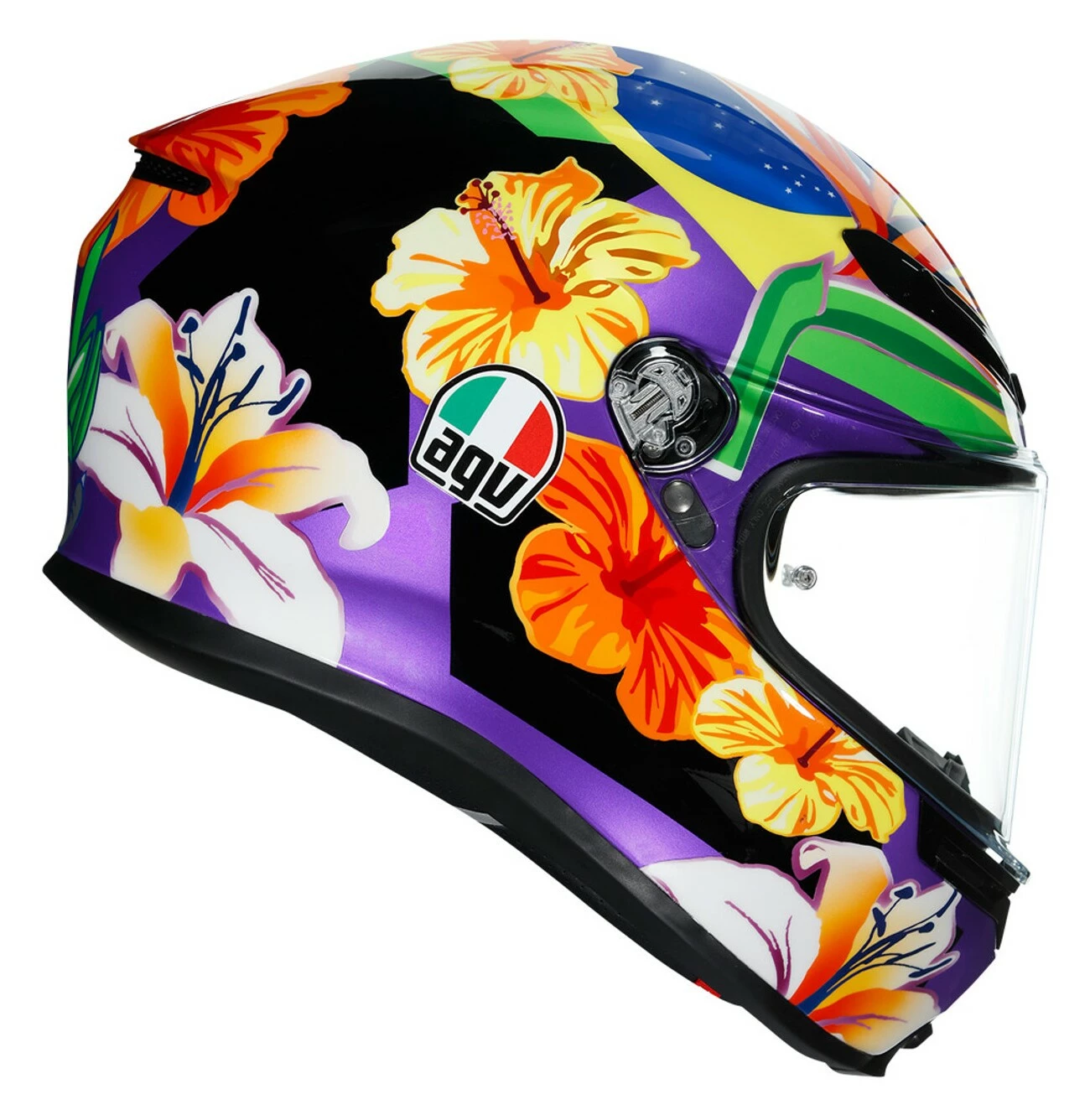 AGV takes aim to fulfill all of your motorcycle helmet needs by harvesting the best characteristics from sport and touring helmets and infusing them into the AGV K6 Helmet. Its shell is comprised of carbon and aramid fiber for excellent protection and weight savings. The helmet’s versatility comes from its aerodynamic shape that works well in any riding position. Four different shell sizes allow for a broad size range to better fit your particular heard circumference and shape. Moisture wicking liners absorb sweat to keep you comfortable on extended rides. The AGV K6 Helmet is the culmination of all of AGV’s road helmet technology to create a single helmet for all riders.