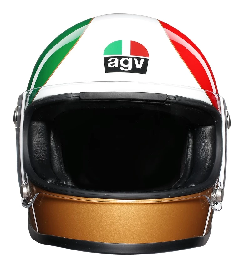 The AGV X3000 Ago Helmet features the same shape and color scheme that Agostini rocked on his way to 15 World Championships. Even the small details, like the special contoured chin bar that allowed Ago to lean right up against the tank, remain. The tricolor design of this once legendary lid was the inspiration for AGV’s equally legendary logo. While the exterior may look the same as it did in the 60’s, the X3000 is packed with all the safety, ventilation and comfort you’d expect from a modern day AGV.