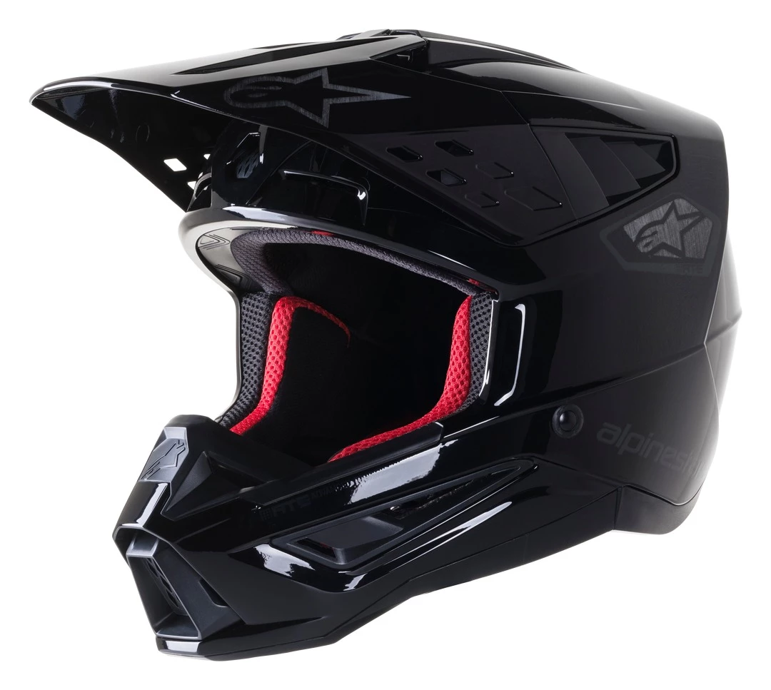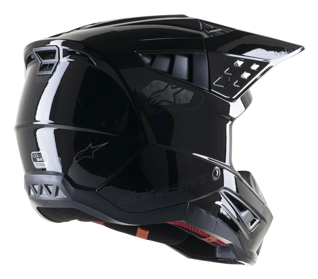 The SM5 Helmet is the result of more than five years of intensive study, development and testing. Alpinestars scrutinized every possible aspect to engineer a helmet that is safe and thoughtfully designed to deliver optimal protection and comfort. This lightweight helmet features a thermo-injected shell incorporating a special polymer blend enhanced by varying degrees of thickness that is engineered to deliver the optimal combination of impact protection and light weight, while the five density EPS liner ensures the correct density in the correct area for enhanced impact absorption. Other key design features include an engineered raised area with padding to effectively reduce the forces transmitted to the collarbone and a patented visor release system that ensures the visor is released with the correct pre-determined amount of force, irrespective of the angle of impact.