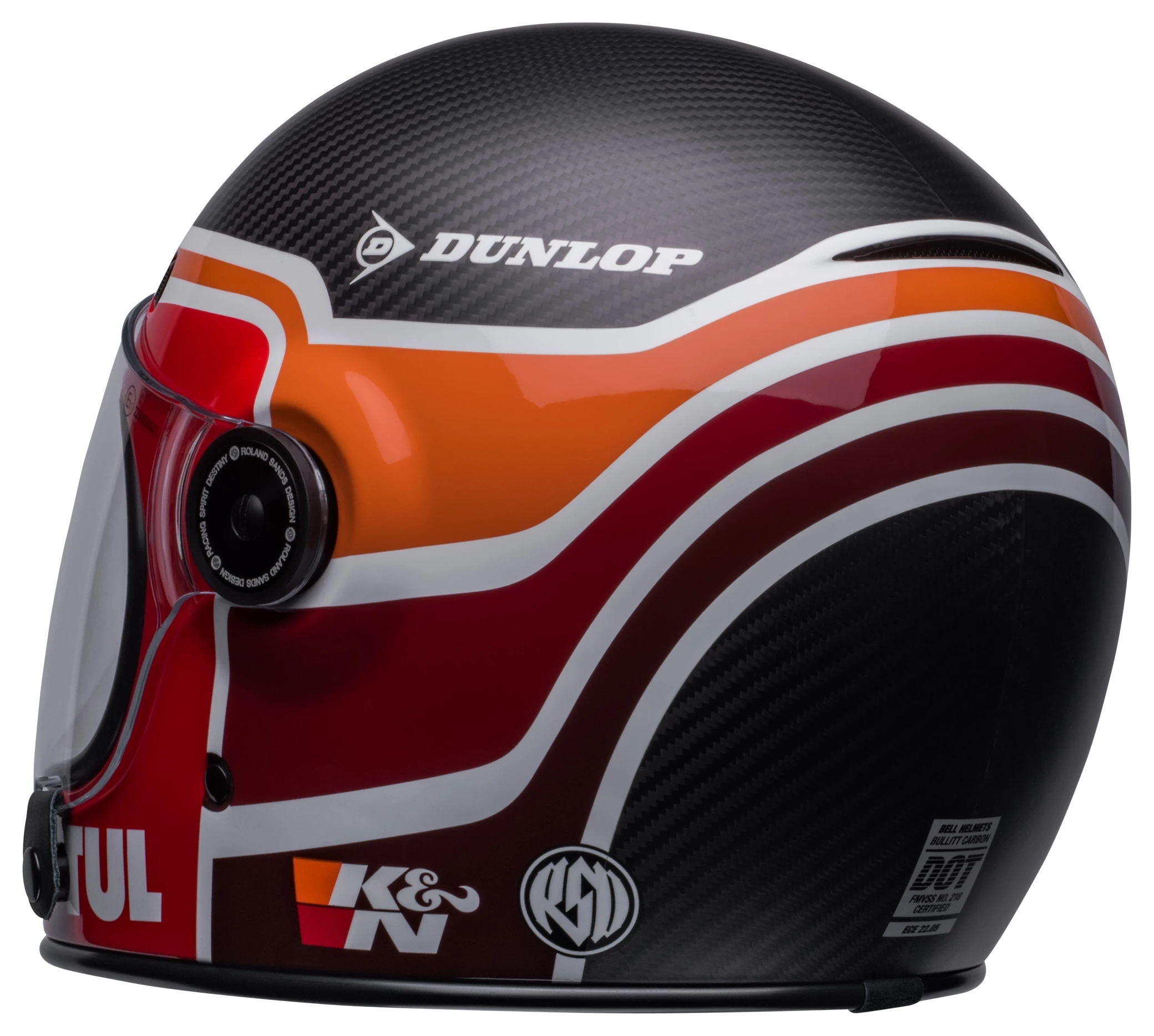To pay homage to the glory days of motorsport, the Bell Bullitt inherits classic Star styling yet is infused with contemporary comforts and safety. Constructed with a low-profile fiber composite shell and multi-density EPS liner, the Bullitt meets modern DOT regulations yet comes as close as possible to the look and feel of the original Star. Luxurious appointments like micro-suede lining with leather trim, metal mesh circular intake vents with a rear exhaust vent and 3D cut cheek pads with speaker pockets compliment the vintage styling and push the Bullitt into the 21st century.