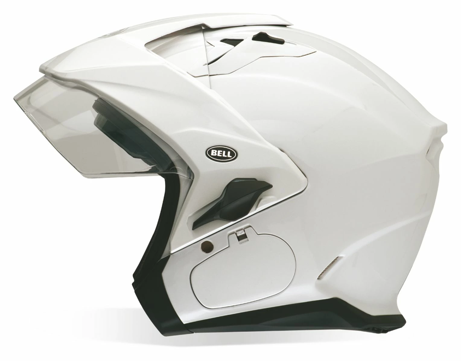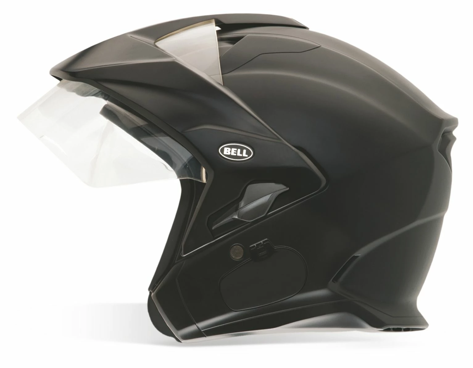 The Bell Mag-9 Helmet is the ultimate in open-face touring. Just about the most feature rich 3/4 helmet on the market, the Bell Mag 9 incorporates a peak visor, clear face shield, internal drop-down sun visor, velocity flow ventilation and integrated compatibility with the Sena SMH10 Bluetooth Stereo Headset and Intercom. With its all-in-one design, the Bell Mag 9 Sena is perfect for riders who like to get on and go, without having to keep track of multiple face shields, sunglasses, communication units, etc. Just pop on the Bell Mag 9 and ride into the sunset.