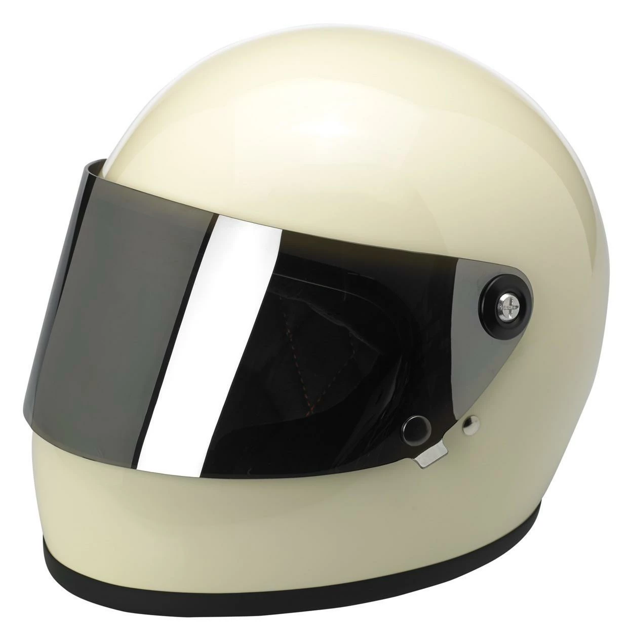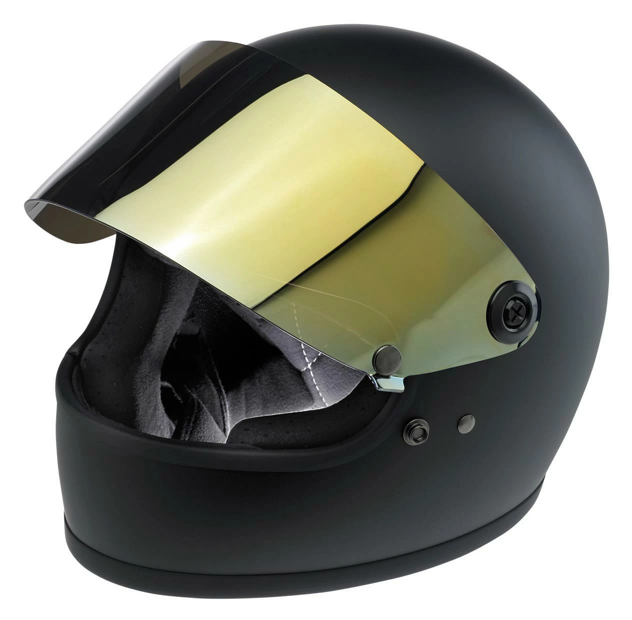 Biltwell retro inspired injection-molded polycarbonate anti-fog face shields in solid and reflective finishes. Universally fits all Gringo S helmet sizes. One stainless steel snap secures the shield while in the down position.