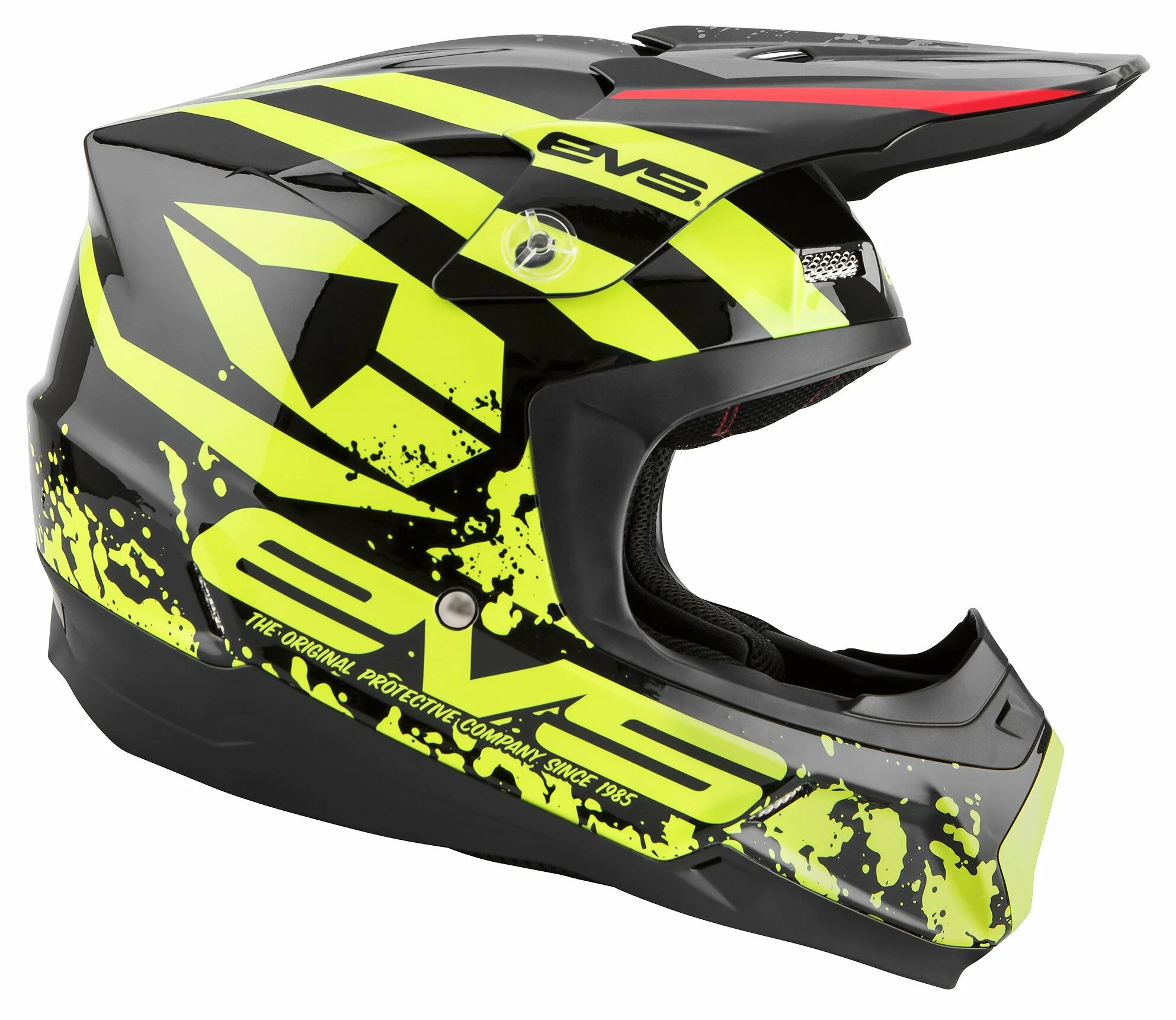 The EVS T5 Helmet is constructed from a lightweight polycarbonate shell with oversized intake and exhaust ports for maximum airflow. The EPS liner is Eject compatible and features ventilation channels for increased breathability.