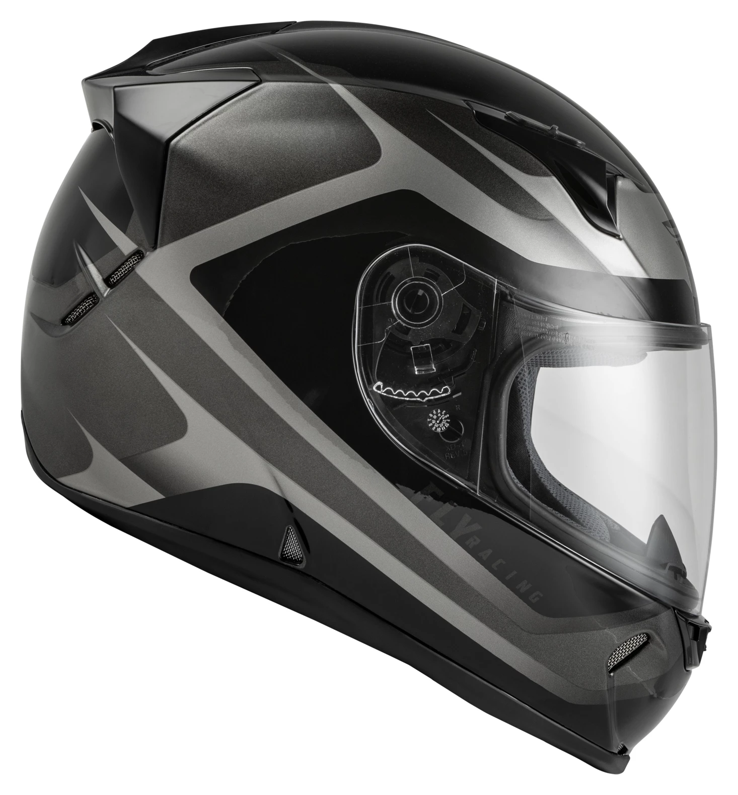 The Fly Racing Revolt Helmet is constructed with a durable and lightweight polycarbonate/ABS shell. The two layers, one softer one slightly harder, of the dual density EPS liner combine to provide a more progressive impact absorption for different levels of impact. The Revolt also features a removable air guide helps direct airflow upwards across the shield for fog free vision.