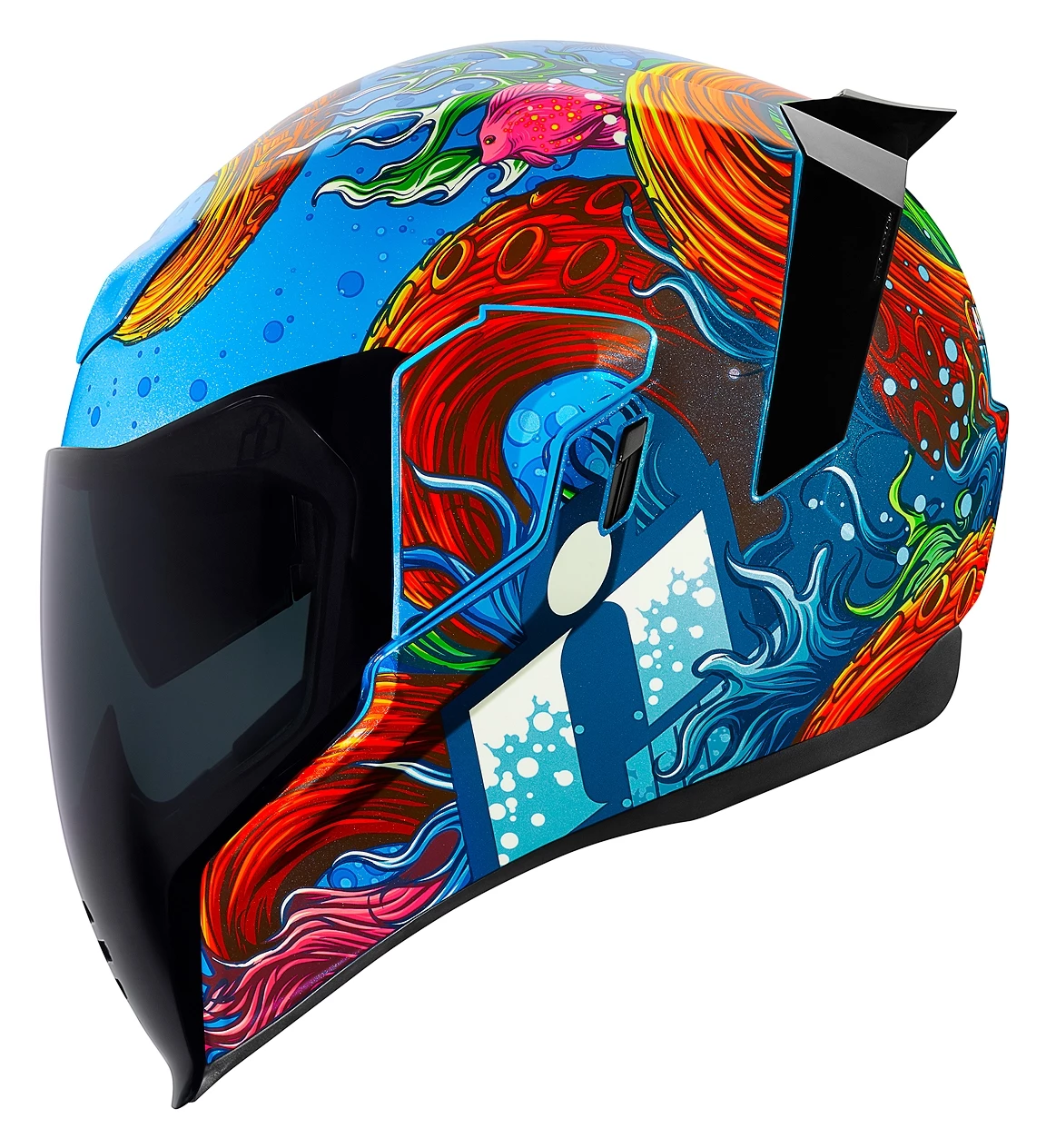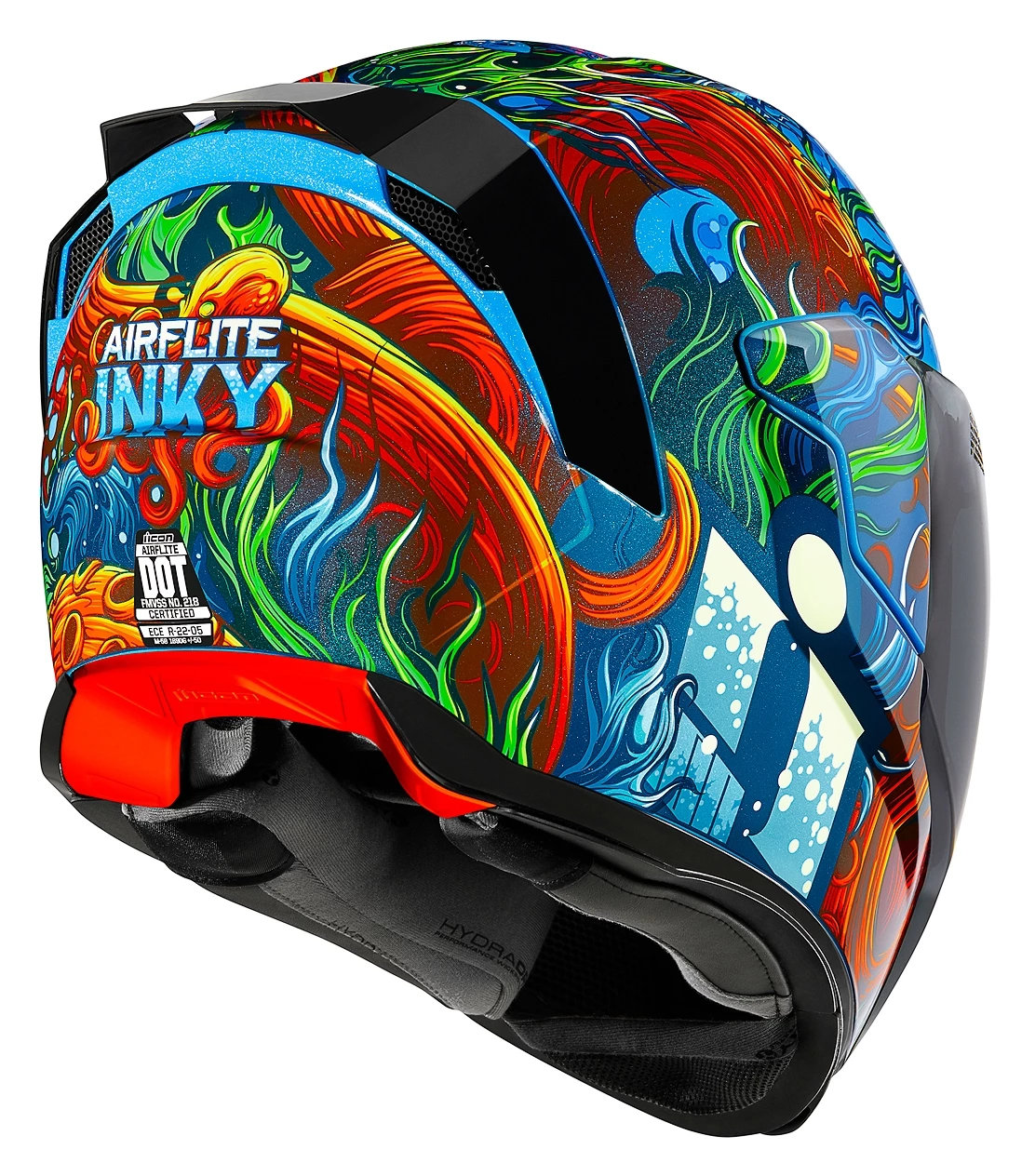 During the spring of 2016, under the cloak of darkness, a wanderlusting octopus named Inky managed a Houdini-level escape from his tank inside the National Aquarium of New Zealand. Using his incredible intellect, lack of skeletal structure and all eight of his sucker-clad arms, Inky wriggled his way across the aquarium floor and slipped out to sea through a drainpipe that was two inches shy of a soda can. There is absolutely no evidence, not one drop in fact, that this helmet design was inspired by his slippery tale of adventure. However, that doesn’t stop us from thinking it could be Inky… gliding through the depths where all murky and mysterious creatures lurk.