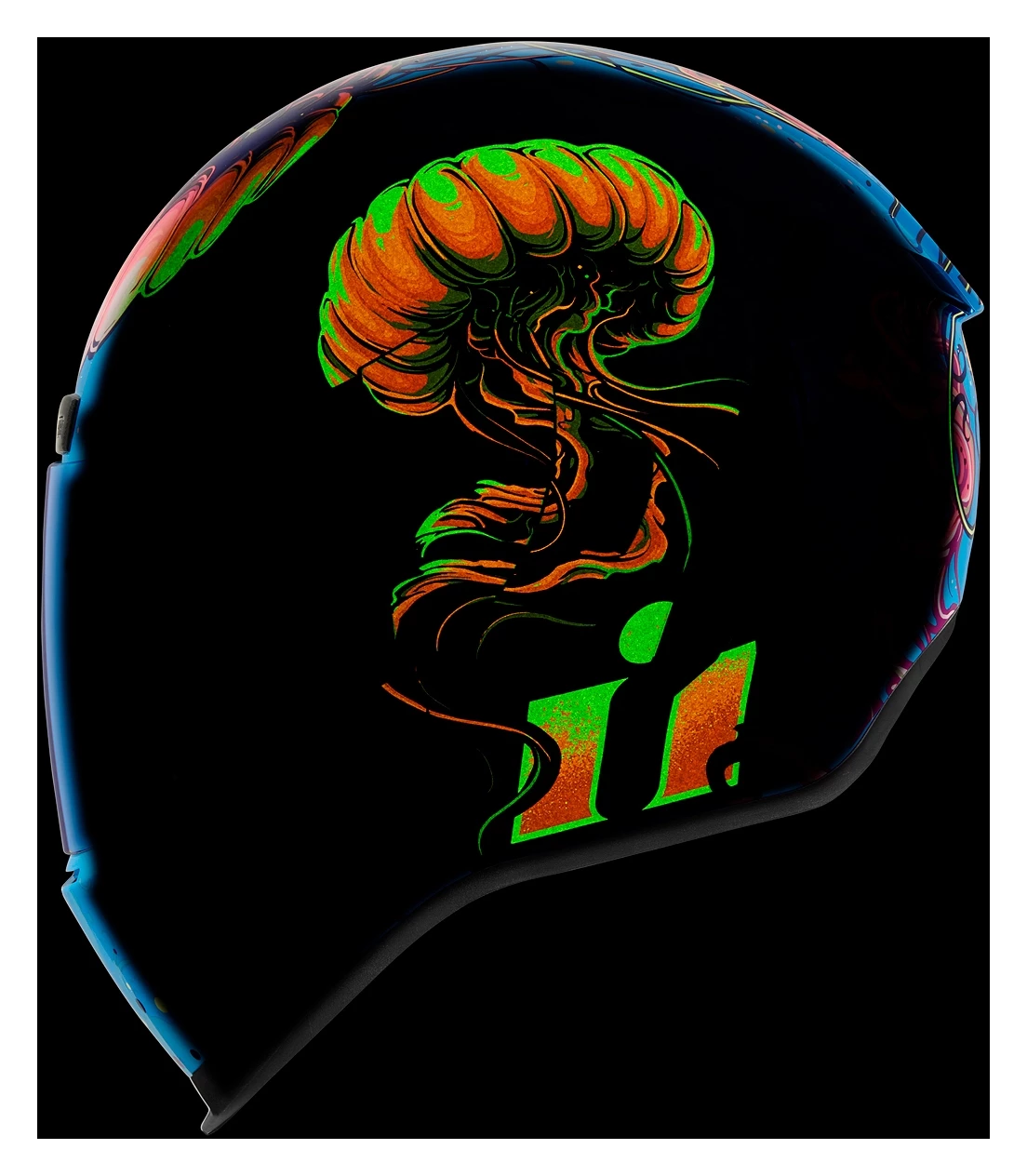 The Icon Airform Helmet is built for riders who need the accouterments of a touring helmet with the performance of a track helmet. Its streamlined and race inspired shell is injection molded polycarbonate for strength. The exterior’s glow-in-the-dark is ready for some night fright riding. The fog-free Icon Optics Face Shield increases peripheral vision and produces an unmatched distortion-free line of sight so you can keep your eyes on the prize. An internal sun visor drops down to shield your eyes at the flip of a switch.