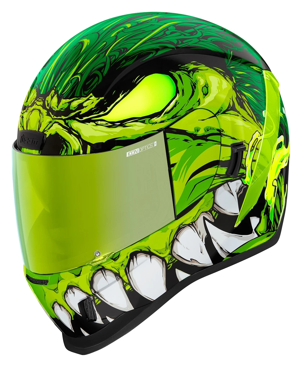 Built for riders who need the accouterments of a touring helmet with the performance of a track helmet. When you want to have your cake and eat it too the Airform is a baker’s dozen of aggro-cupcakes. The Icon Airform Helmet pilfers the best ingredients from the performance oriented Airframe Pro and the feature rich Airflite. Icon then pats it, rolls it and marks it with a B before sliding it into an industrial oven for you and me. The result is an everyday helmet, if your everyday includes commuting to work in an aggressive riding posture or leisurely attacking apexes while on tour. Hold onto your buns, baker’s man.