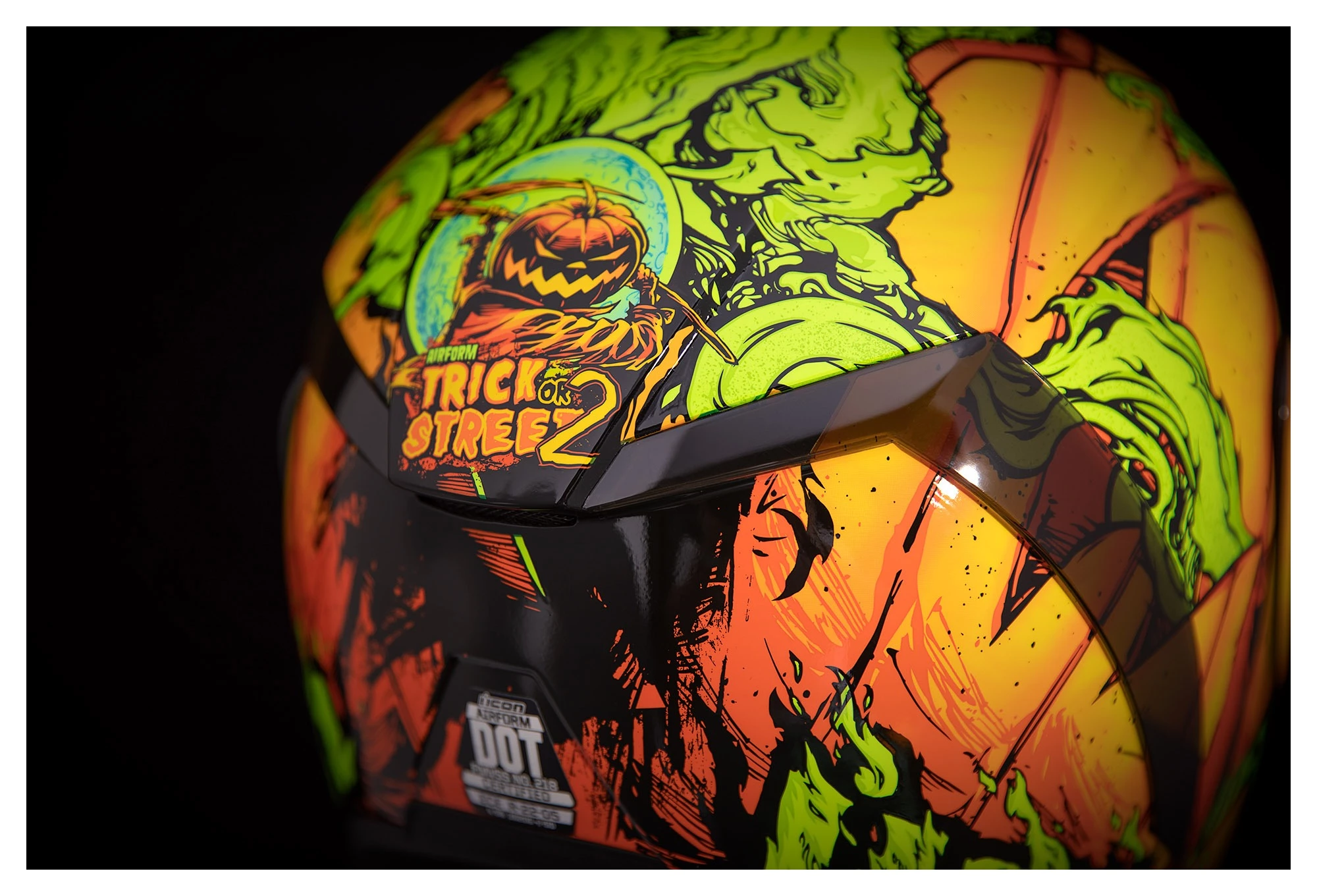 The Icon Airform Helmet is built for riders who need the accouterments of a touring helmet with the performance of a track helmet. Its streamlined and race inspired shell is injection molded polycarbonate for strength. The exterior’s glow-in-the-dark is ready for some night fright riding. The fog-free Icon Optics Face Shield increases peripheral vision and produces an unmatched distortion-free line of sight so you can keep your eyes on the prize. An internal sun visor drops down to shield your eyes at the flip of a switch.
