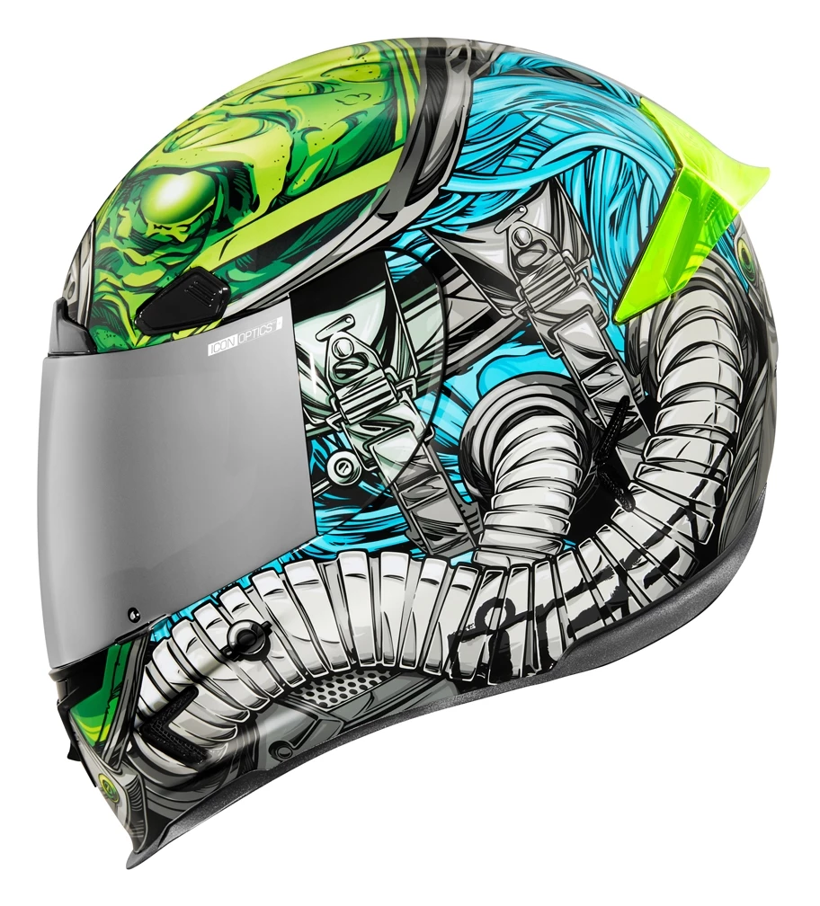 The dramatically reduced shell profile, comprised of aerospace-grade carbon fiber (FRP) features a track-recognized ECE certification. Precision assembly techniques further this dedication to mass reduction, allowing Icon to craft a helmet that is exceptionally light and peerlessly outfitted. Internally, the traditional three-piece liner has been upgraded to a five-piece liner, providing a greater amount of fitment combinations for each unique head shape. Crown, lateral, fore and aft padding components allow for a possibility of 27 fitment combinations in a single shell, double that of the Icon Airframe’s competitors.