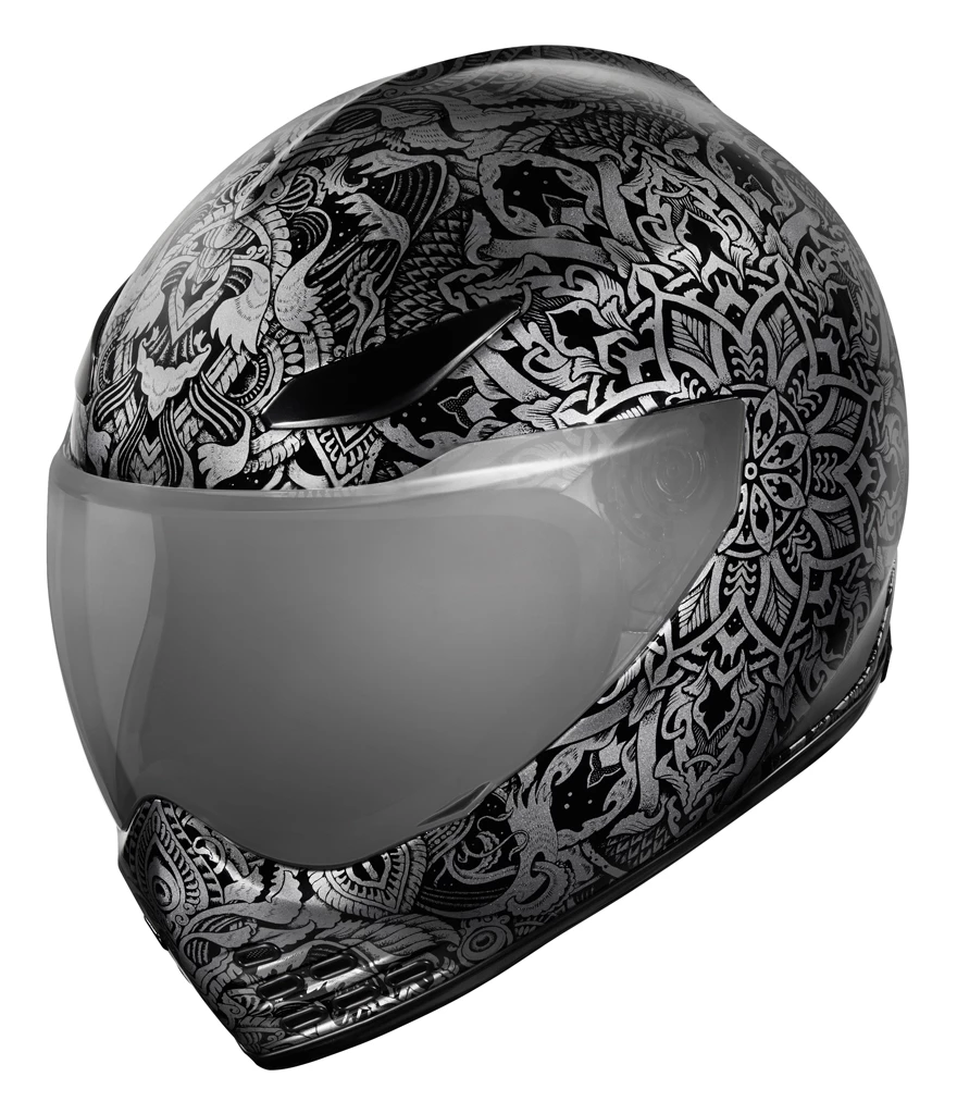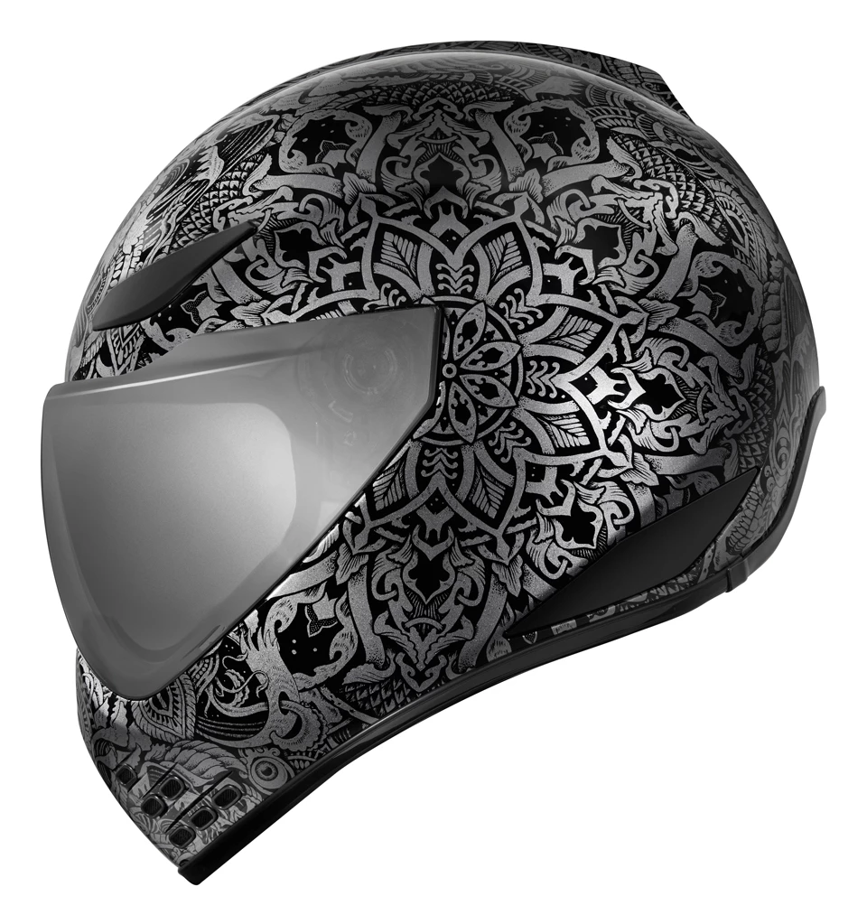 The Icon Domain Helmet features a hand-crafted FRP shell for maximum integrity with minimal weight. A prominent dorsal ridge, large brow-mounted intake vents and channeled EPS provide increased ventilation. This increased ventilation greatly enhances rider comfort when paired with the removable Hydradry liner and removable chin curtain. The Domain is also compatible with ICON’s HelmLink Bluetooth communications system, which seamlessly integrates with the helmet (sold separately).