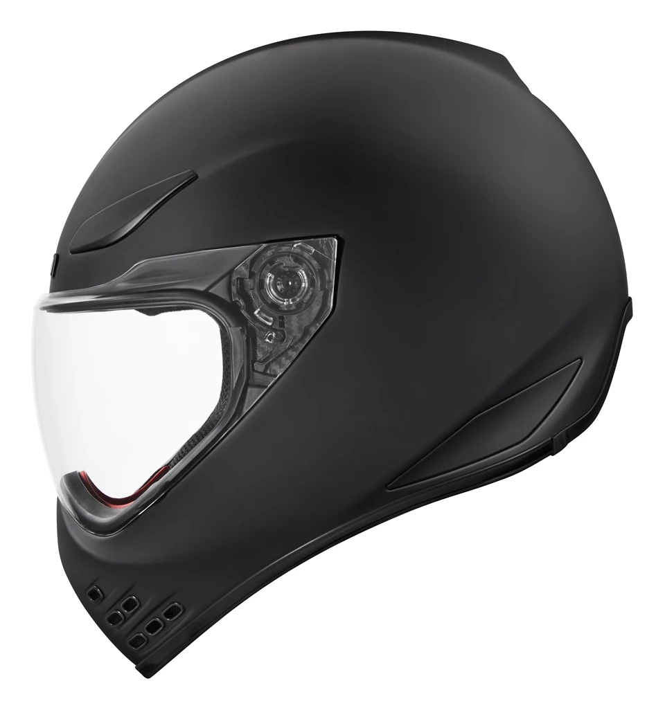 The Icon Domain Helmet features a hand-crafted FRP shell for maximum integrity with minimal weight. A prominent dorsal ridge, large brow-mounted intake vents and channeled EPS provide increased ventilation. This increased ventilation greatly enhances rider comfort when paired with the removable Hydradry liner and removable chin curtain. The Domain is also compatible with ICON’s HelmLink Bluetooth communications system, which seamlessly integrates with the helmet (sold separately).