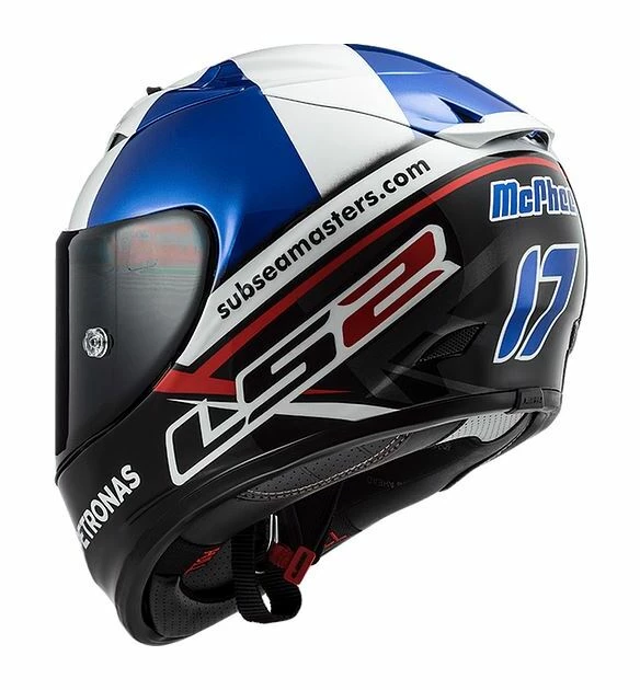 A high performance full-face motorcycle helmet designed by racers for racers, the LS2 Arrow EVO McPhee Helmet was designed by a team that included LS2 engineers in Spain and riders from Moto 3, Moto 2 and Moto GP. The High-Performance Fiberglass Composite (HPFC) shell and multi-density EPS make for a lightweight helmet that provides superior protection. Thanks to high quality moisture-wicking liner, 3D lasercut cheek pads and fully adjustable multiport ventilation you’ll stay cool even the ride heats up.