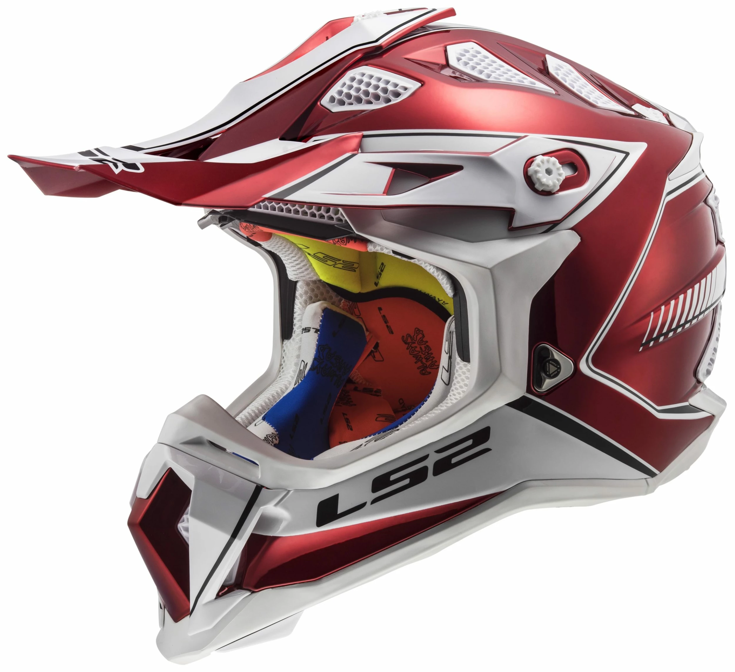 The LS2 MX470 Subverter is a game changer in the world of high performance MX helmets. LS2 uses their proprietary Kinetic Polymer Alloy (KPA) for the shell. KPA is lightweight, offers just a little flex as part of the energy management system and is ultra strong. LS2 uses 3 shell sizes for the Subverter to assure that you get the smallest, lightest shell possible for your specific size. The internal energy absorbing EPS uses in-molding technology by attaching an internal polycarbonate protective layer between the dual-density EPS and the comfort padding. This layer is slick and allows the comfort liner just a bit of slippage to help offset and diminish rotational energy and dramatically improve the dissipation of energy absorbed by the EPS. In other words, it takes energy management to a better level. The shell has 35 separate ventilation ports with a channeled EPS to allow the maximum possible airflow, keeping the rider cooler in the heat of competition. The eye port is wide, allowing for a full field of vision and accommodates virtually any brand of goggles (sold separately).