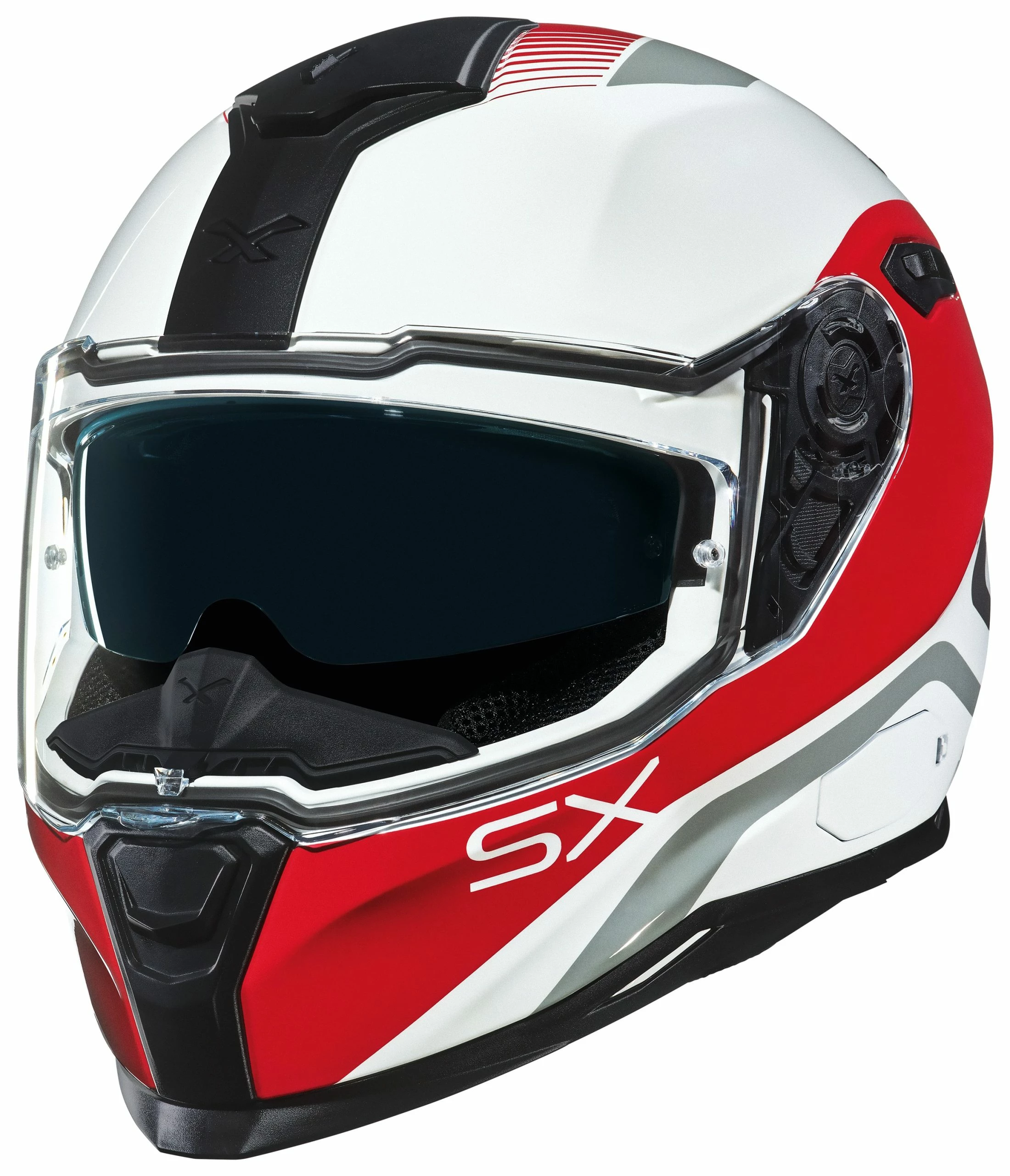 The SX100 is a solid sport and sport touring helmet with a plush interior, high quality shield seal and sizable drop down internal sunvisor. It’s the perfect helmet for the daily commuter or someone hitting the road for an extended trip. It has all of the necessary accoutrements that make up a quiet ride from its aggressively undercut neck roll to the perimeter seal around the view port; all of these components work in concert to occlude road noise. The drop down internal sun visor is easy to deploy, even with thick winter gloves, and saves you from carrying a spare shield to toggle between sunny morning versus evening commutes.