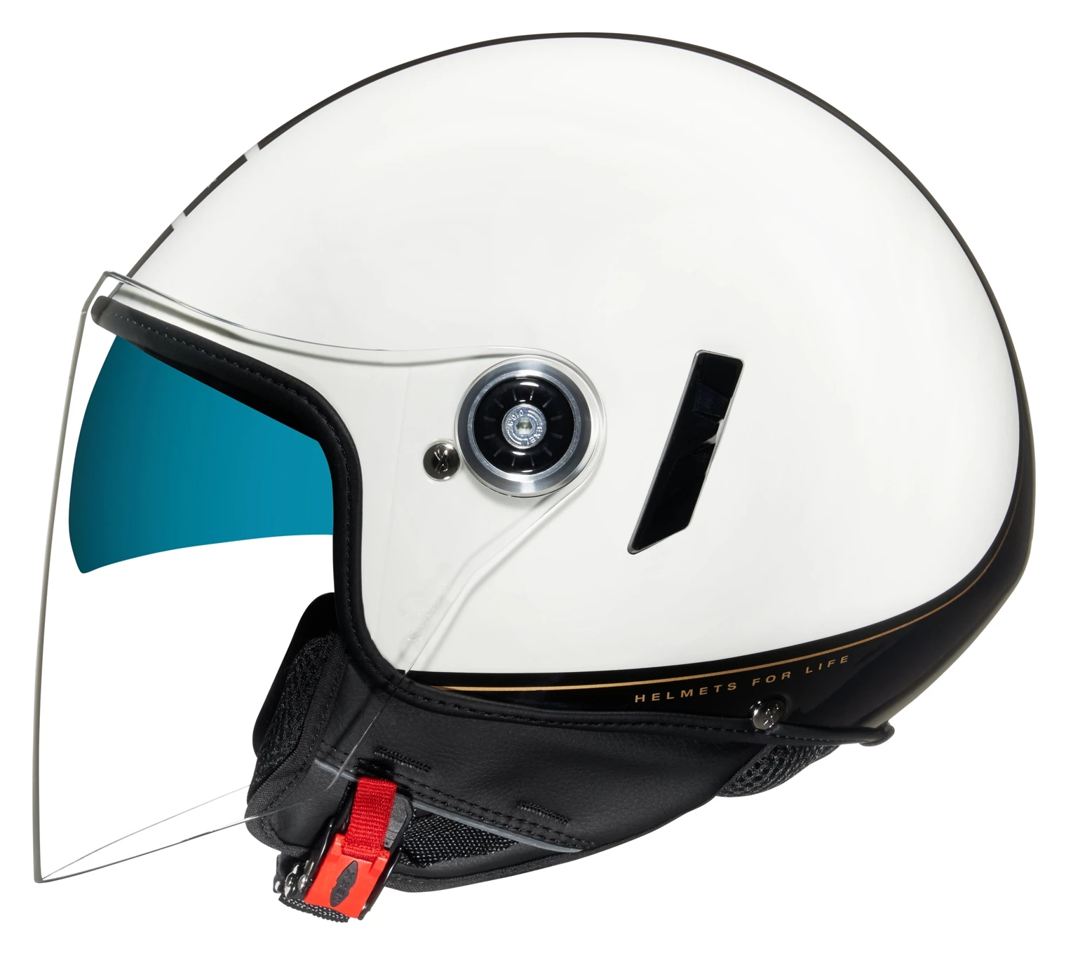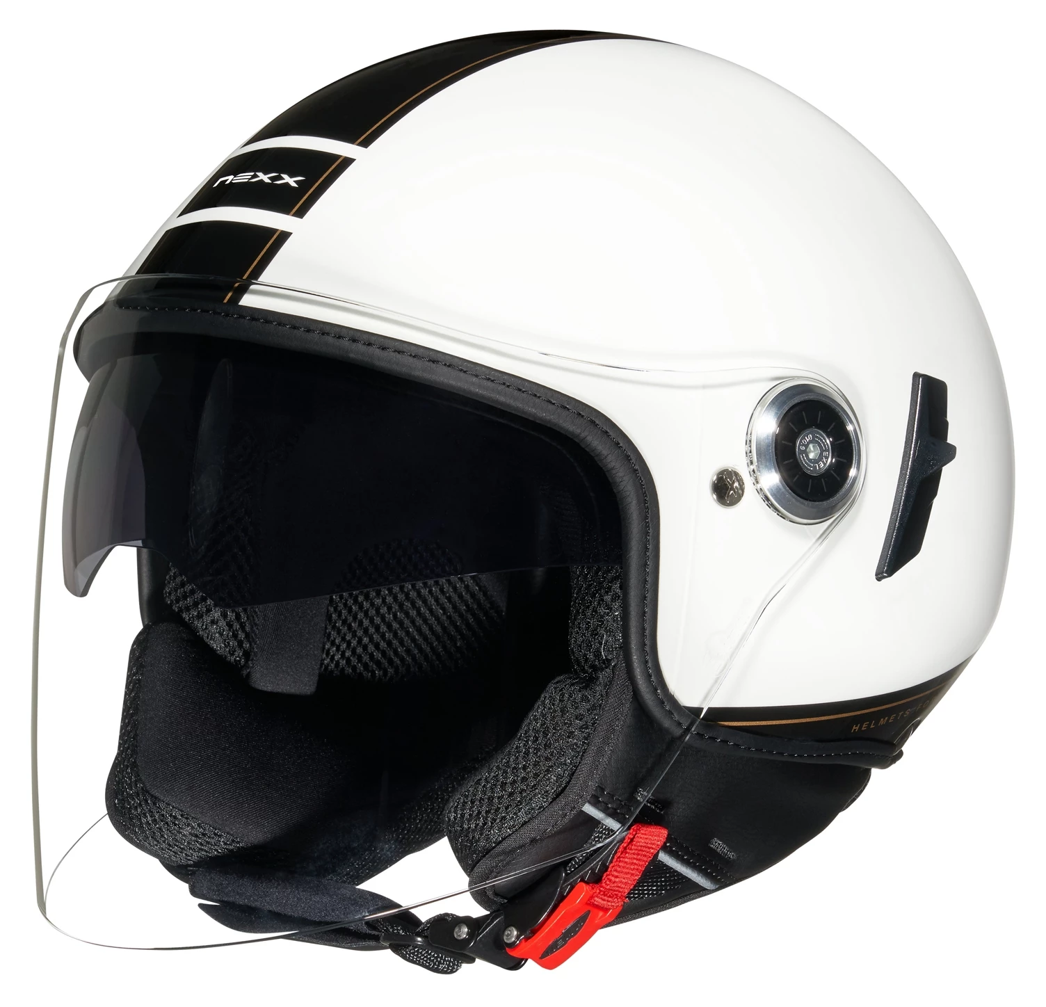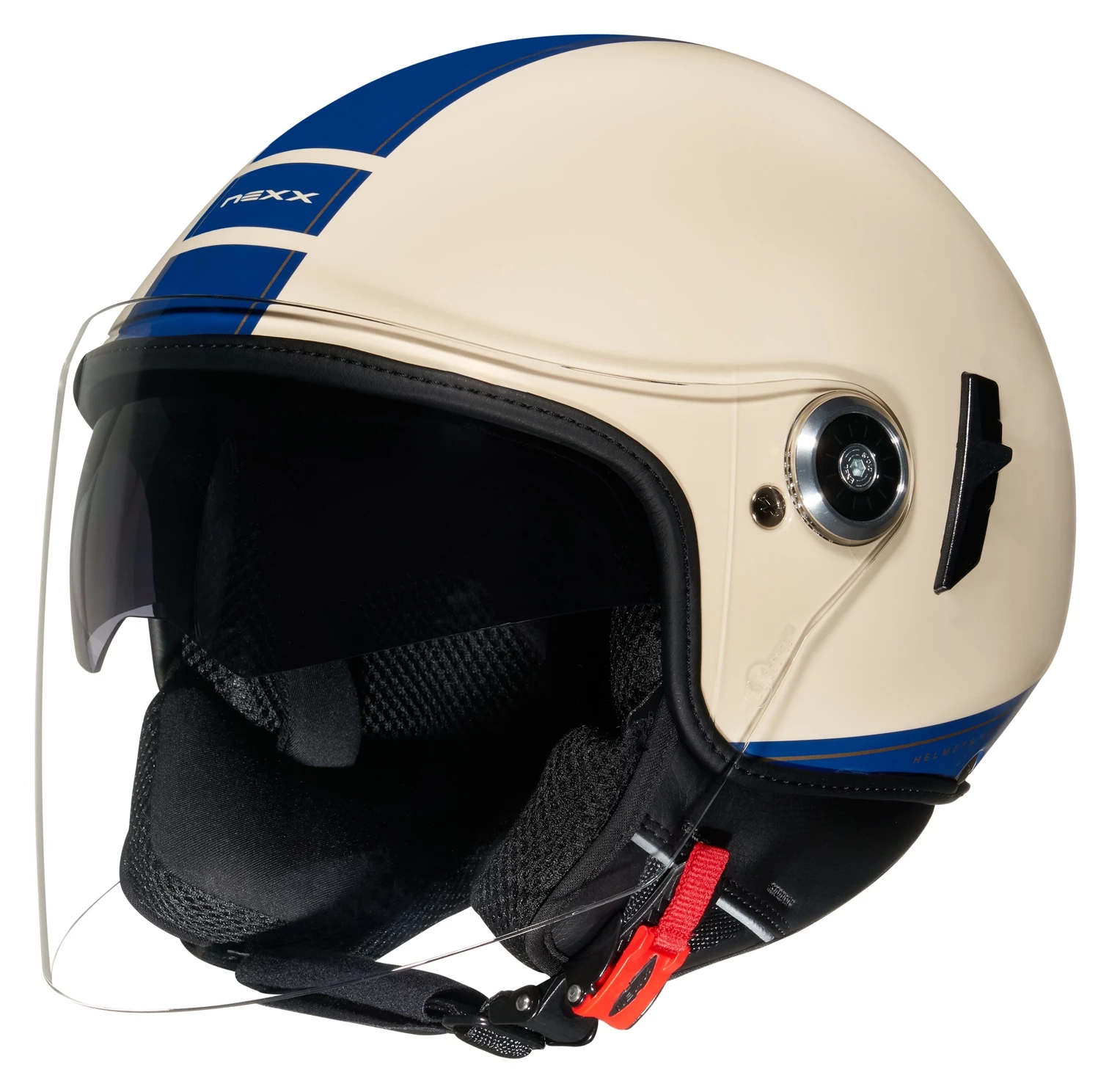 Protect your dome in style with the Nexx SX60 Sienna Helmet! This helmet will keep you stylish and safe when scooting around town. The Advanced Thermo Resin shell is light weight and super durable to keep up with anything the road throws at you. The inside of the helmet has a 3D shaped interior that will fit any head shape. Keep the interior fresh with a soft, allergy free, removable and washable lining. A Polycarbonate Lexan face shield and drop down sun visor have your eyes covered from pesky insects and UV rays.