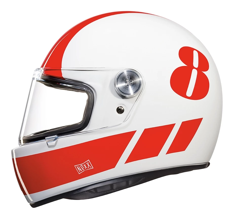 Seventies styling meets modern comfort, materials and construction. The XG100 Racer only looks vintage. Underneath that premium paint lies a carbon composite exterior shell and a plushly lined interior. The shield closes with a firm detent and wears spun aluminum pivot hardware.
