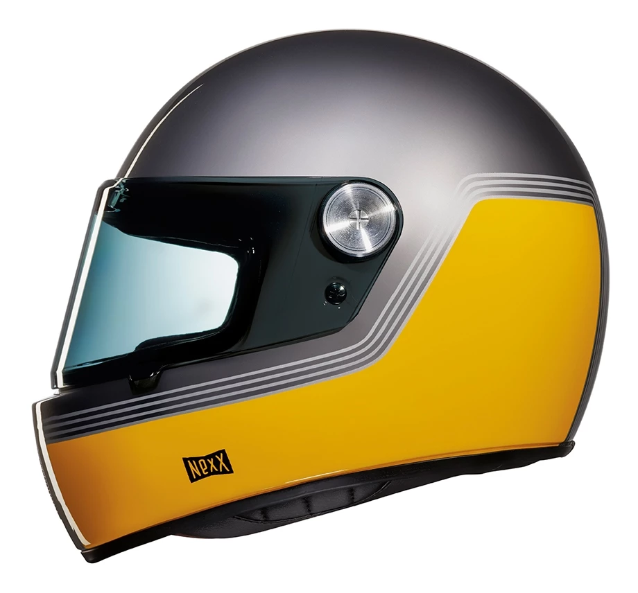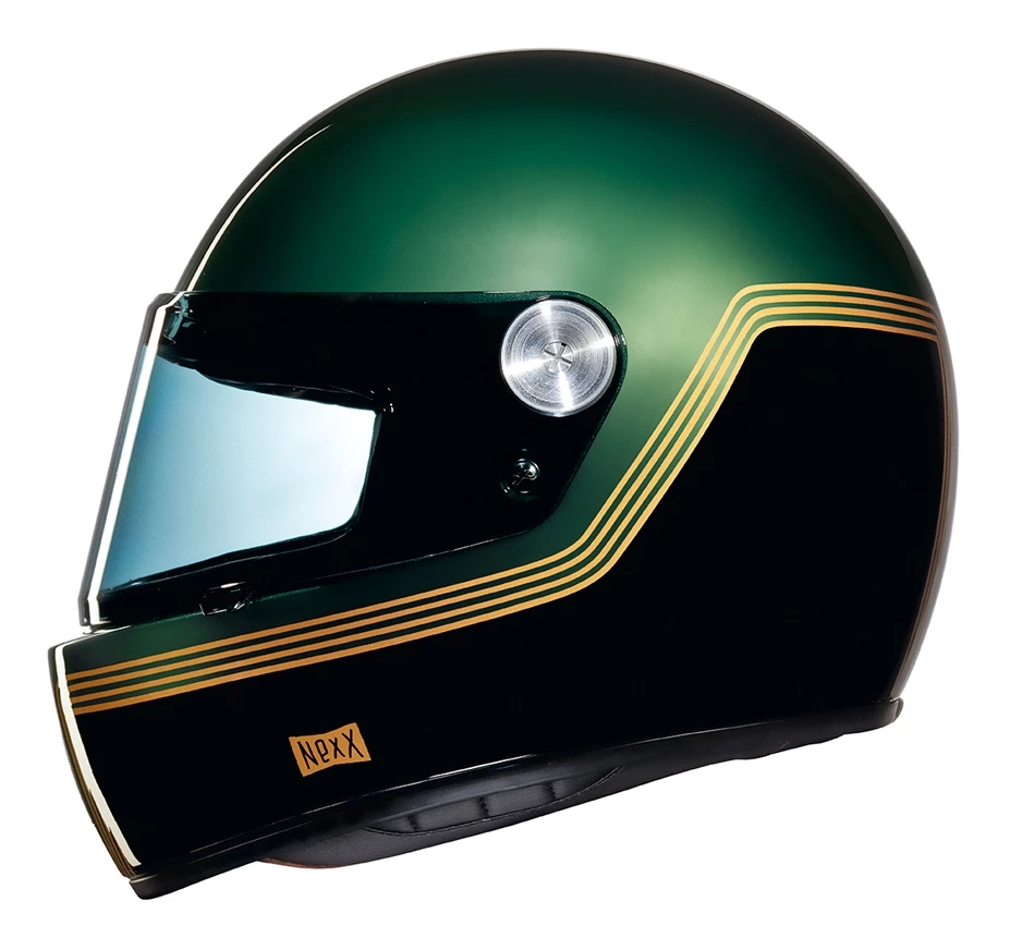Seventies styling meets modern comfort, materials and construction. The XG100 Racer only looks vintage. Underneath that premium paint lies a carbon composite exterior shell and a plushly lined interior. The shield closes with a firm detent and wears spun aluminum pivot hardware.
