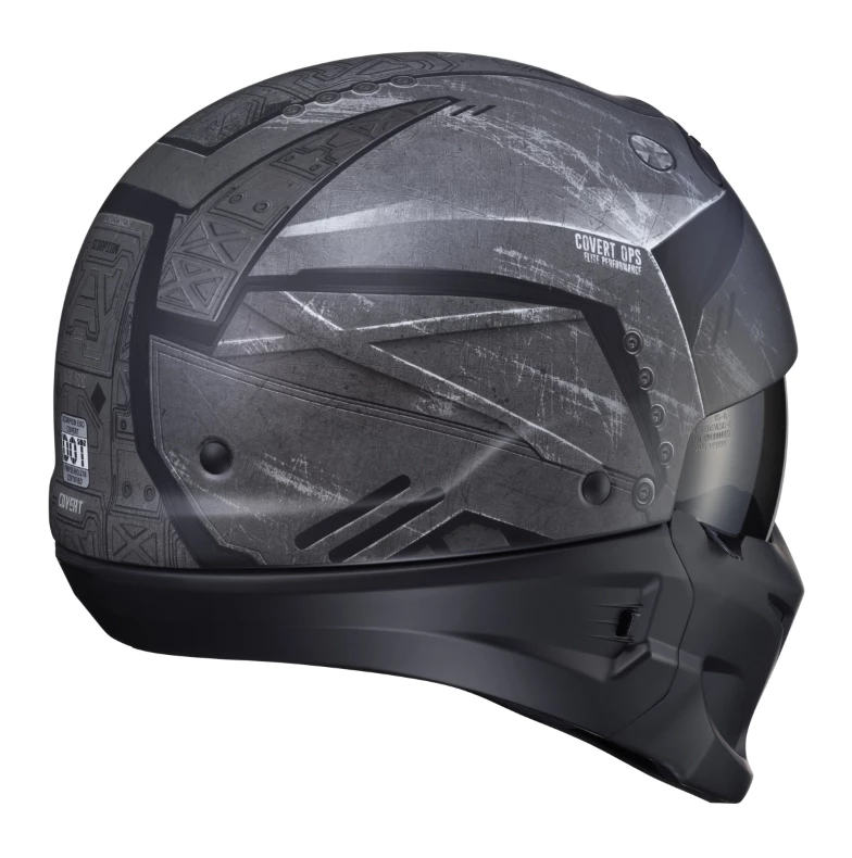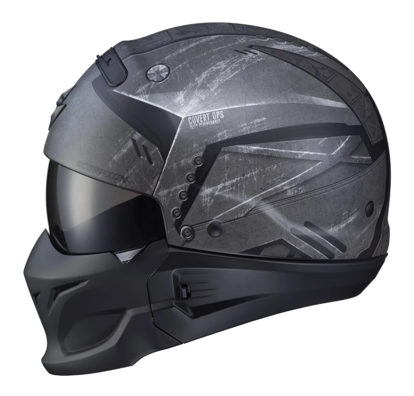 Scorpion adds a whole lot of “but wait, there’s more” to the classic half shell with the Scorpion Covert Helmet. They start off strong with a tune-able ventilation system. Next they mix in a no-frills drop down sun visor system. One pull on a tab lowers the shades then pushing the same tab retracts them; it couldn’t be easier. Snapping in a rear bottom sleeve transforms your lid into a 3/4 helmet and helps to muffle some of the cries from your lives-saving exhaust. Despite the extra coverage, Scorpion’s Kwikwick liner keeps your head in the game by channeling heat and humidity up to the ventilation ducts to be piped out the back. You’ll be cool as a cucumber. But wait, there’s more. Attaching the front mask shields your pretty face from bugs, and you-name-it debris as you’re blasting down the interstate. If you’re one who frequently needs to transition from being seen to only heard, the Scorpion Covert is there for missions ranging from the twisties to the impossible.