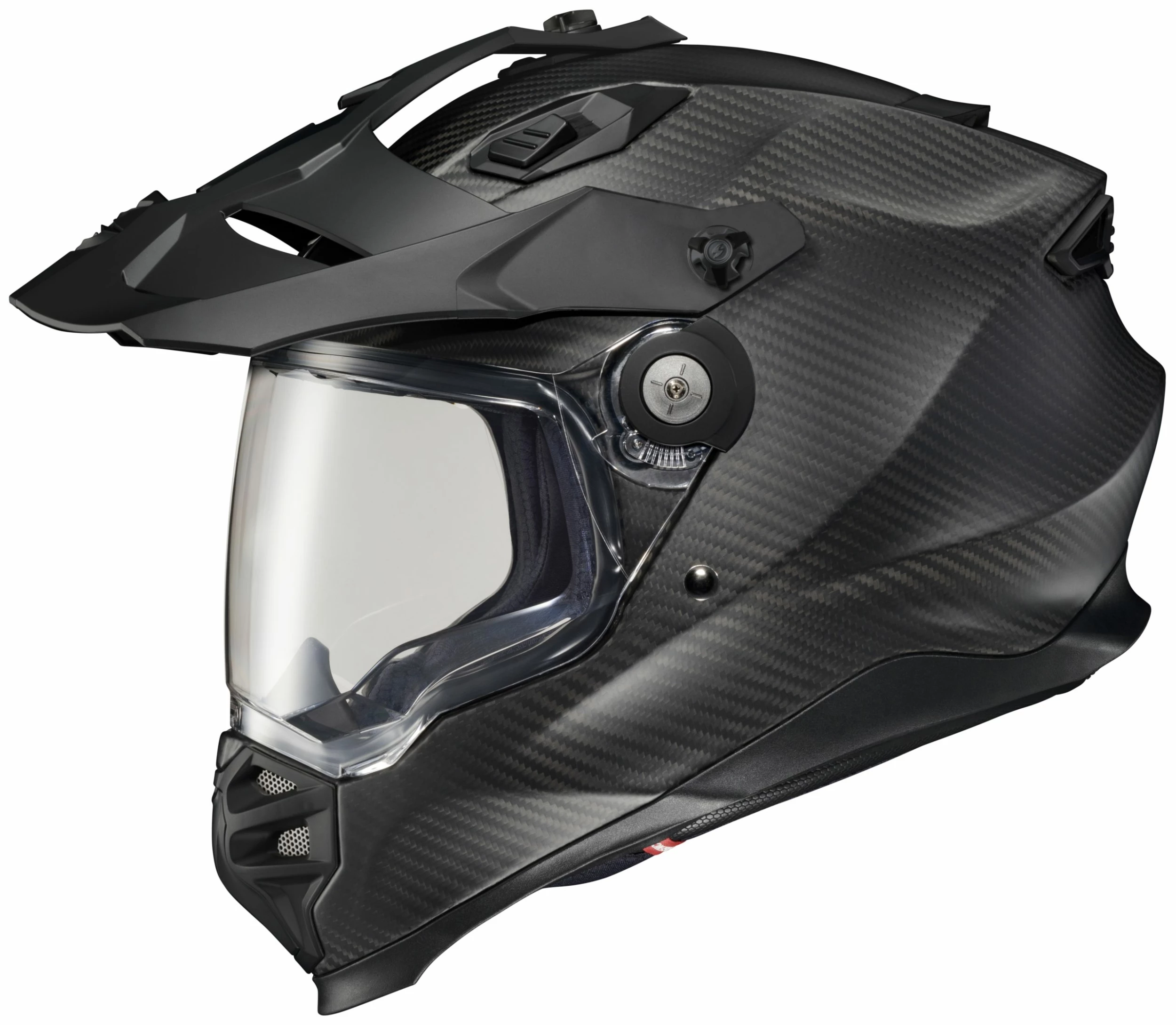 The Scorpion EXO-XT9000 Helmet was engineered to meet the demands of the serious Adventure Rider by striking the perfect balance of features and benefits for both on and off-road. Each helmet is carefully hand crafted using the latest 3K Carbon fiber material, providing superior strength and extreme light weight. The peaks aerodynamics were designed to help keep buffeting and lift to a minimum when riding at high speeds. If the highway is your primary terrain, or if you’re riding away from the sun, the peak visor can be easily removed to allow an even more streamline aerodynamic profile. When adventures take you off-road where goggles are preferred, the face shield features a tool-less system allowing you to easily and quickly swap your shield for goggles. The wide eye port allows for greater peripheral vision and accommodates most sizes and brands of goggles. Another unique feature only seen in Scorpion EXO helmets is the Airfit liner inflation system, which allows you to customize the fit of your cheek pads, which also helps significantly reduce wind noise, buffeting and lift. Whether you’re traveling the globe or riding casually, the XT9000 Carbon was built to provide you with the comfort, safety and confidence needed to take on any terrain; making it a true All-Road, All-Weather helmet.