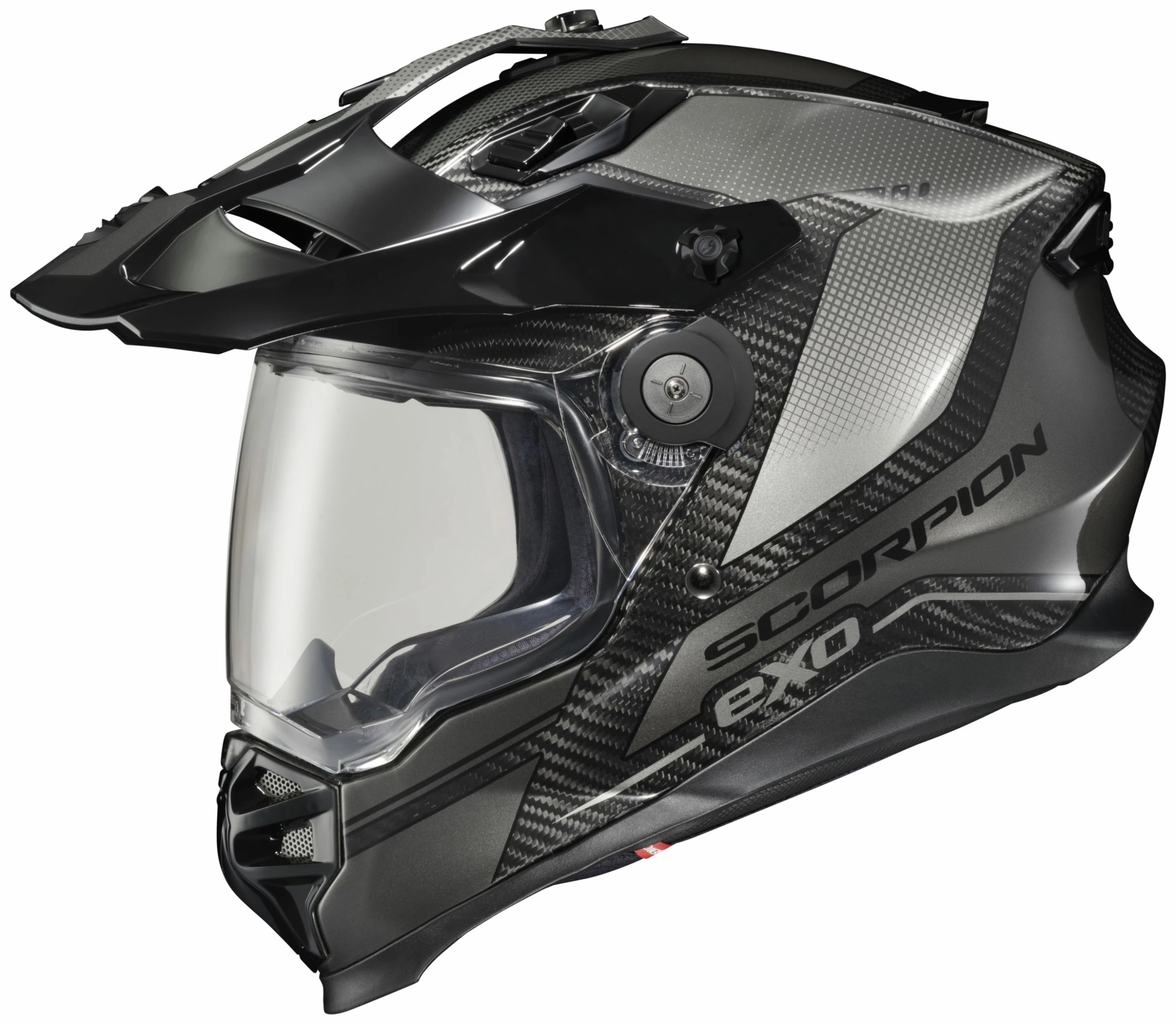 The Scorpion EXO-XT9000 Helmet was engineered to meet the demands of the serious Adventure Rider by striking the perfect balance of features and benefits for both on and off-road. Each helmet is carefully hand crafted using the latest 3K Carbon fiber material, providing superior strength and extreme light weight. The peaks aerodynamics were designed to help keep buffeting and lift to a minimum when riding at high speeds. If the highway is your primary terrain, or if you’re riding away from the sun, the peak visor can be easily removed to allow an even more streamline aerodynamic profile. When adventures take you off-road where goggles are preferred, the face shield features a tool-less system allowing you to easily and quickly swap your shield for goggles. The wide eye port allows for greater peripheral vision and accommodates most sizes and brands of goggles. Another unique feature only seen in Scorpion EXO helmets is the Airfit liner inflation system, which allows you to customize the fit of your cheek pads, which also helps significantly reduce wind noise, buffeting and lift. Whether you’re traveling the globe or riding casually, the XT9000 Carbon was built to provide you with the comfort, safety and confidence needed to take on any terrain; making it a true All-Road, All-Weather helmet.