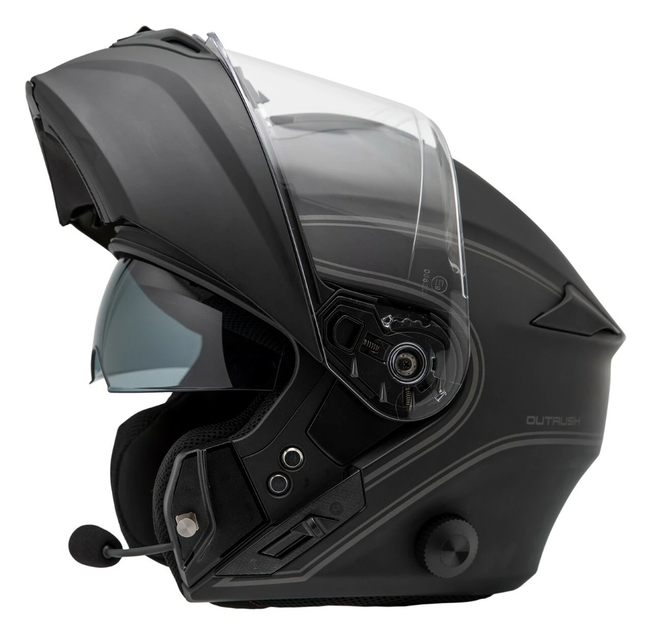 The Sena Outrush Modular Helmet is the perfect helmet for doing 9 to 5 Monday through Friday then going out on an adventure on the weekend. This helmet features Bluetooth 3.0 technology wrapped in a lightweight polycarbonate shell which eliminates the need for fussing around with speaker pads and wires. Simply grab the helmet, and hit the road.