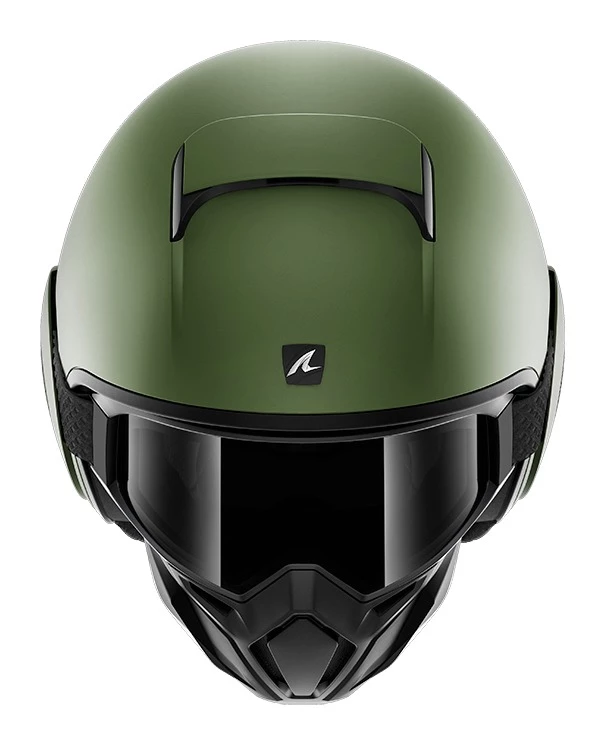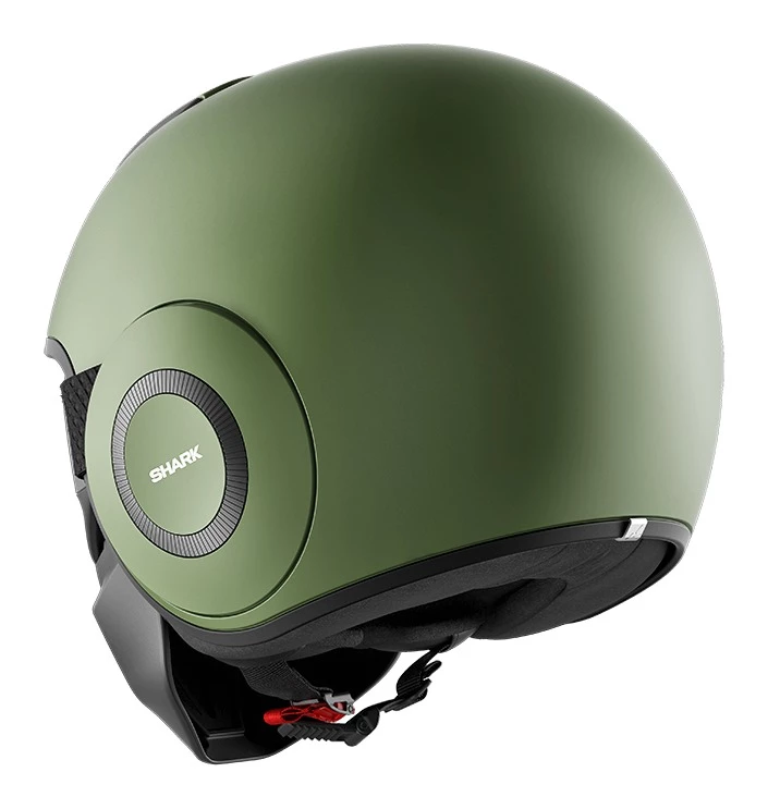 Note: Helmet features a D-ring closure, not the micro-ratchet as shown. Matte Green helmet also features large Shark branding on front like the Matte Black and Grey helmets product photos.