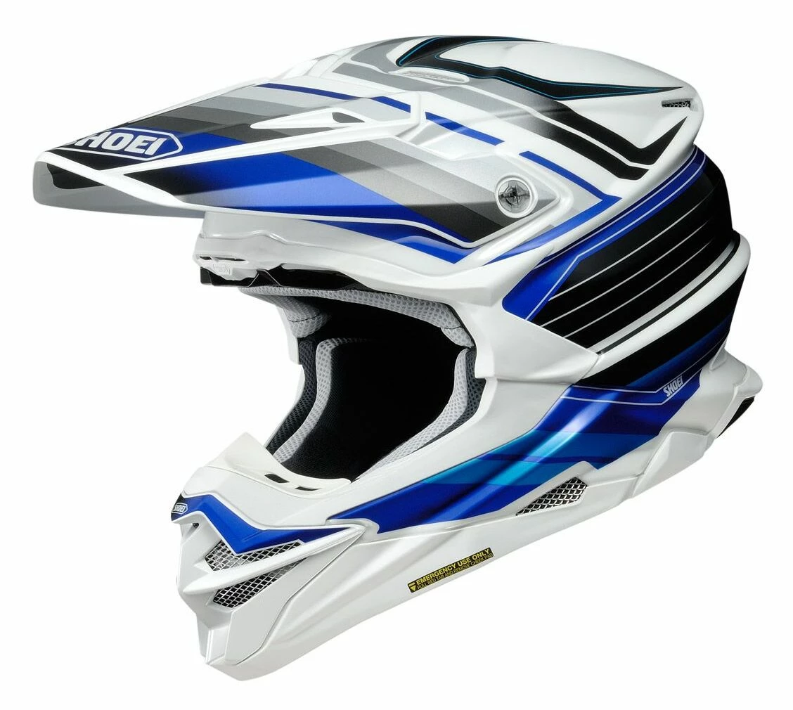 Get ready to rumble in the arena with the Shoei VFX-EVO Helmet, the next iteration of the popular VFX-W. The VFX-EVO’s liner incorporates the unique M.E.D.S. (Motion Energy Distribution System), a specially inserted module of the EPS liner designed to absorb sudden impacts by reducing rotational acceleration to the head in the event of a crash. Shoei’s in-house testing showed rotational energy to be reduced by 15% in comparison to that of the VFX-W off-road helmet. The shell is constructed with high performance AIM+ (Advanced Integrated Matrix Plus Multi-Fiber), a combination of fiberglass and organic fibers. The result is a rigid, ultra-lightweight, yet elastic structure.
