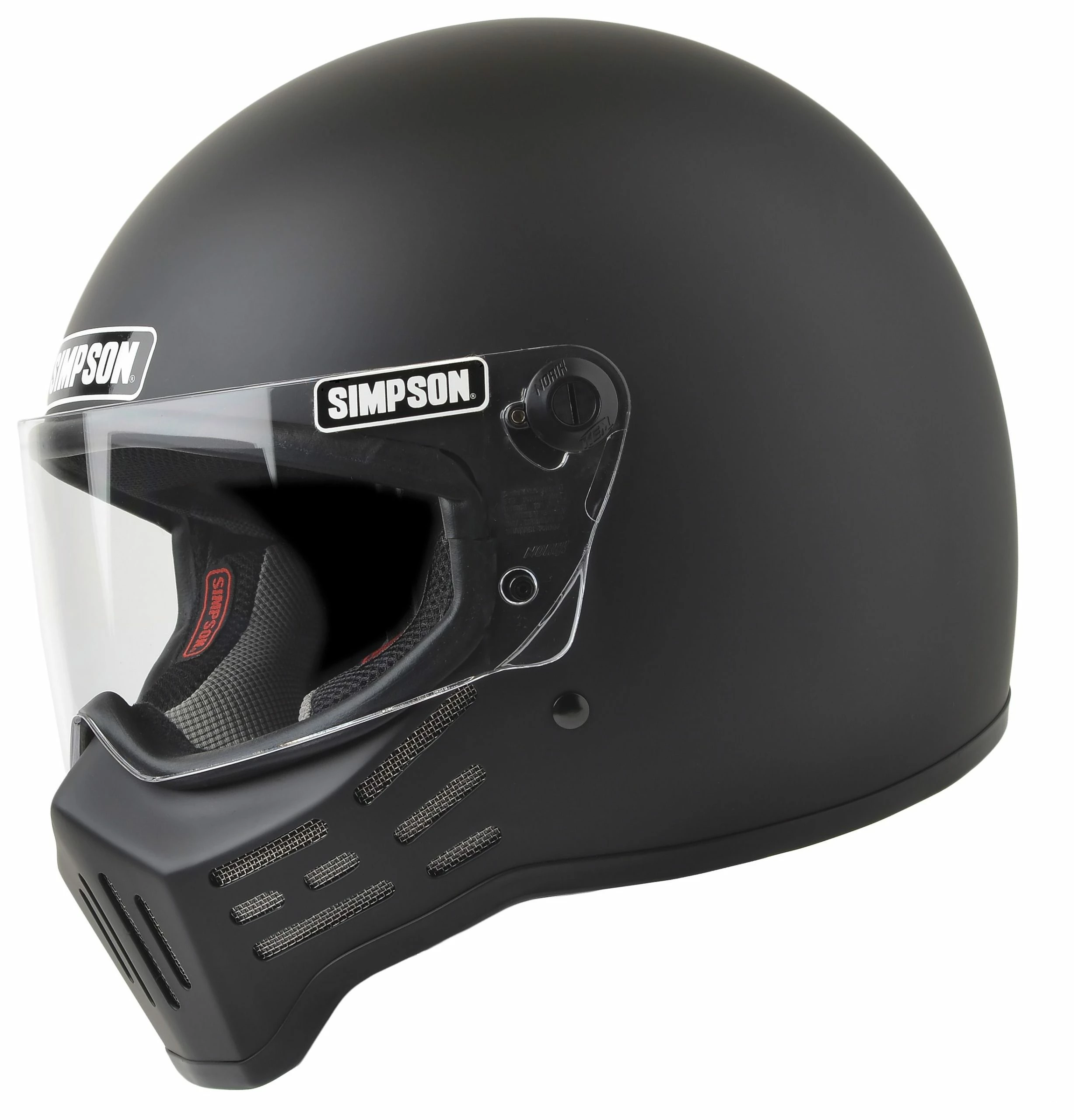 The Simpson Model 30 Bandit Helmet is one of those rare helmets whose style has remained unchanged since its inception in the 1970’s. The original M30 Bandit was popular with many varieties of motosport enthusiasts throughout its history, but this contemporary incarnation has been designed strictly for use on a Motorcycle. The Model 30 Bandit retains a DOT safety rating and a low overall weight at 3.0 lbs for the standard composite shell. This Bandit also offers tons of ventilation, and Simpson’s Free Stop pivot system which allows the wearer to set the shield open at any angle.
