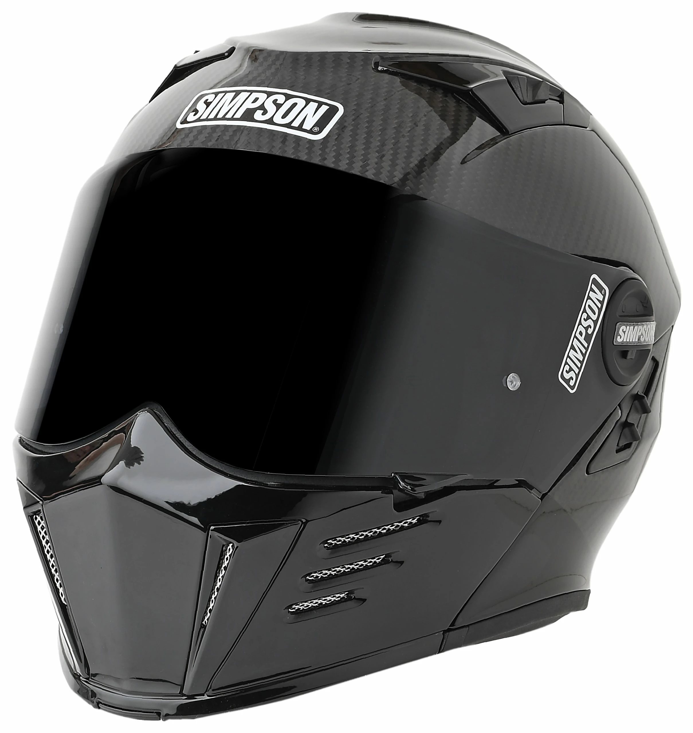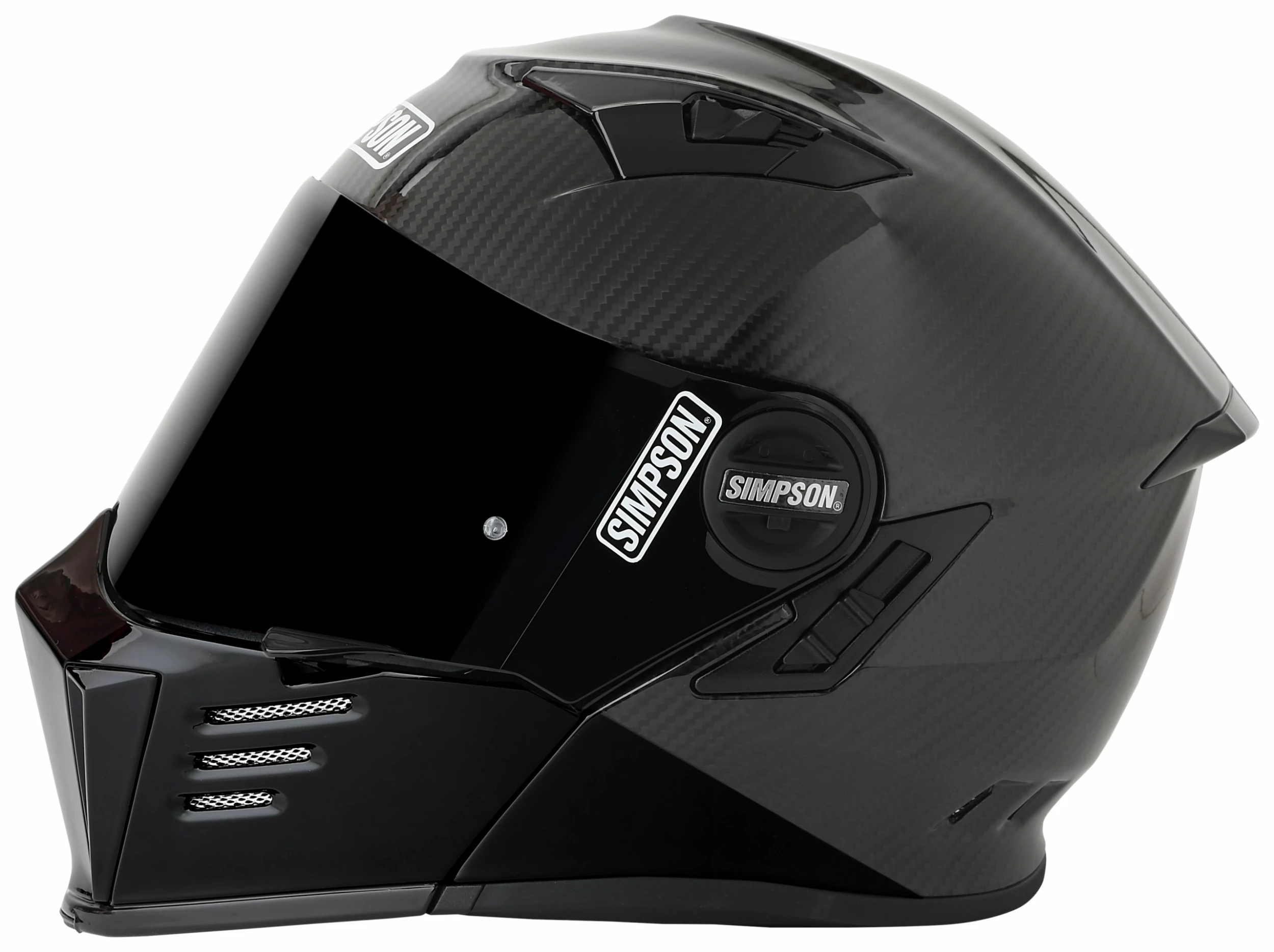 Simpson takes their touring Ghost Bandit helmet to the next level with the Mod Bandit Carbon helmet. Featuring the same design cues of the original Bandit plus the touring comforts of the Ghost Bandit, the Mod Bandit Carbon provides that extra level of convenience modular helmet wearers know and love. The 100% carbon fiber ultra-lightweight shell has been aerodynamically tuned for motorcycle riding and is fully ventilated for maximum airflow when you need it most. Integrated speaker and microphone pockets make it easy to install your favorite communication device and a drop-down sun visor makes riding through changing light conditions as easy as flipping a switch.