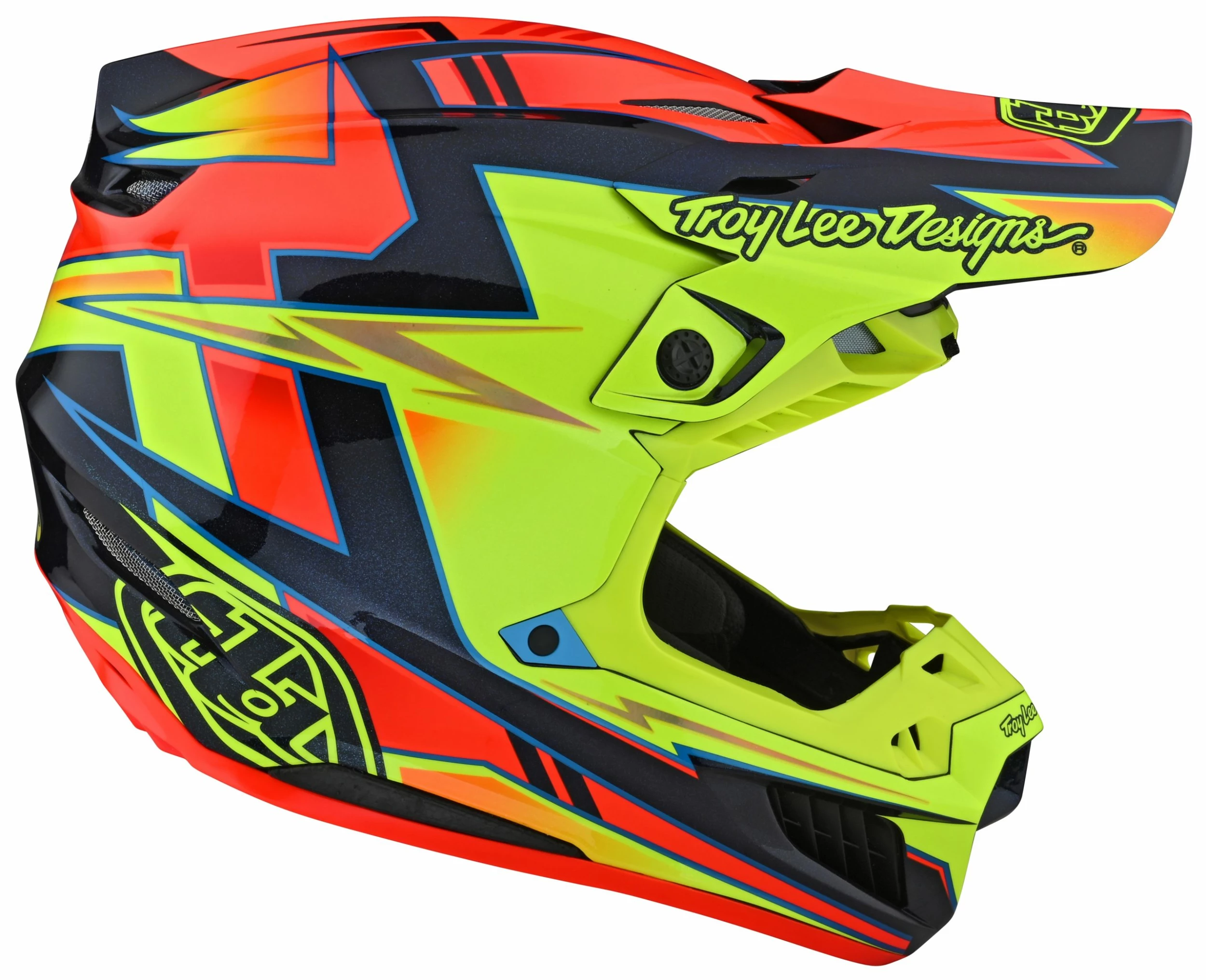 Sitting at the top of Troy Lee’s SE food chain, the SE5 is a premium motocross helmet designed with the latest technology, protection and style in mind. Developed alongside Troy Lee’s lineup of world class athletes, this helmet features a fiberglass / composite shell, in-molded MIPS brain protection, dual density EPS, a chin bar with collarbone suspension system, 3 separate shell / EPS sizes for the most accurate possible fit, lightweight titanium d-rings, shearing break away screws for visor impacts, and a forced air intake system spanning the whole helmet. With features like these it is no wonder this helmet is the choice of racers and riders across the globe.
